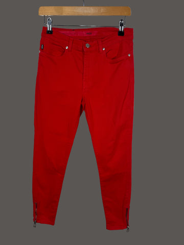 Blugi statement de la Hugo Boss, într-o nuanță intensă de roșu, creați pentru femeia care...