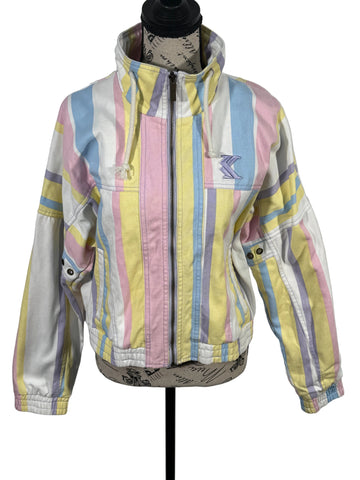 Geaca Karl Kani pentru dama, marime L, cu design multicolor in dungi verticale pastel (galben,...