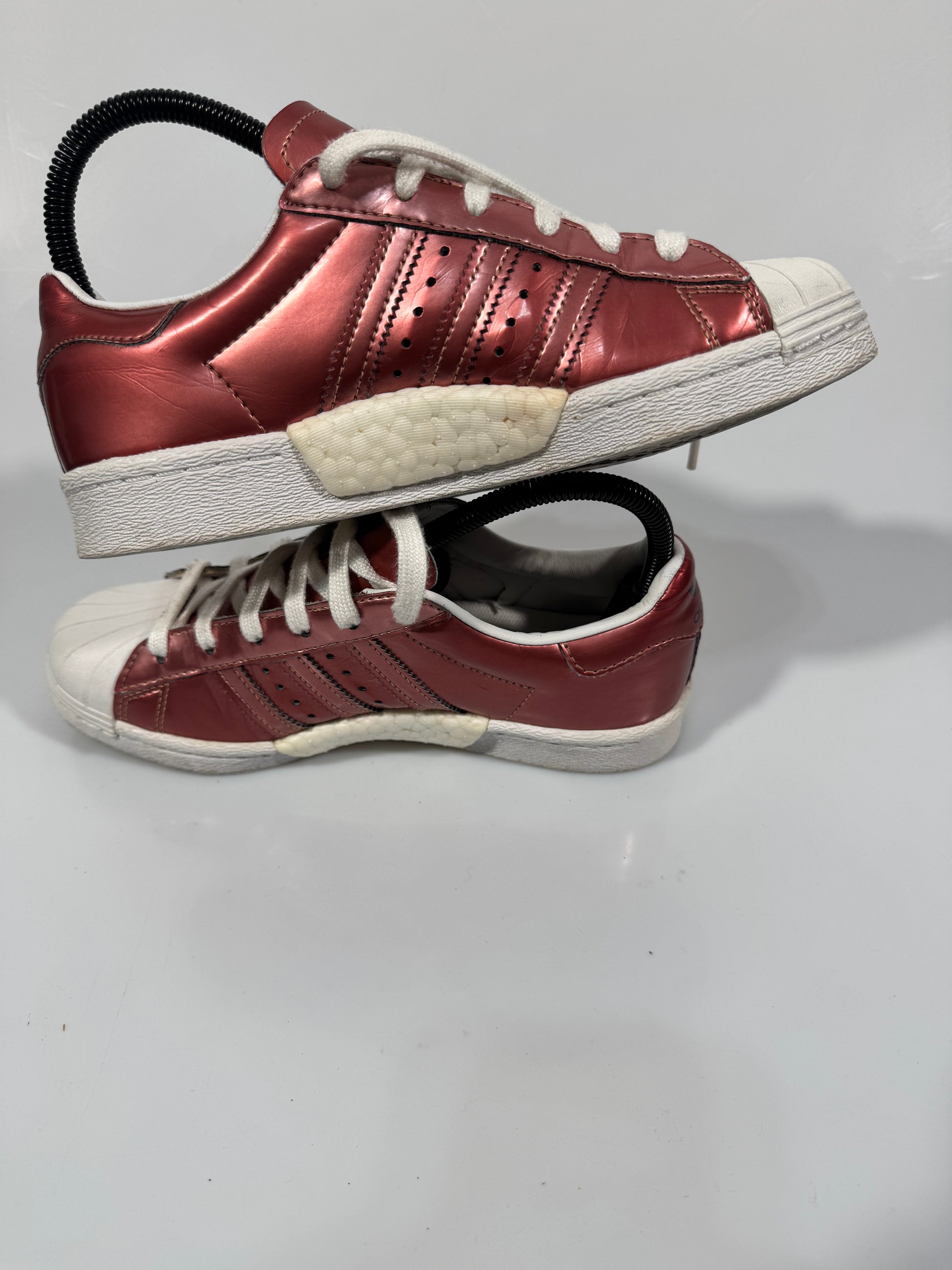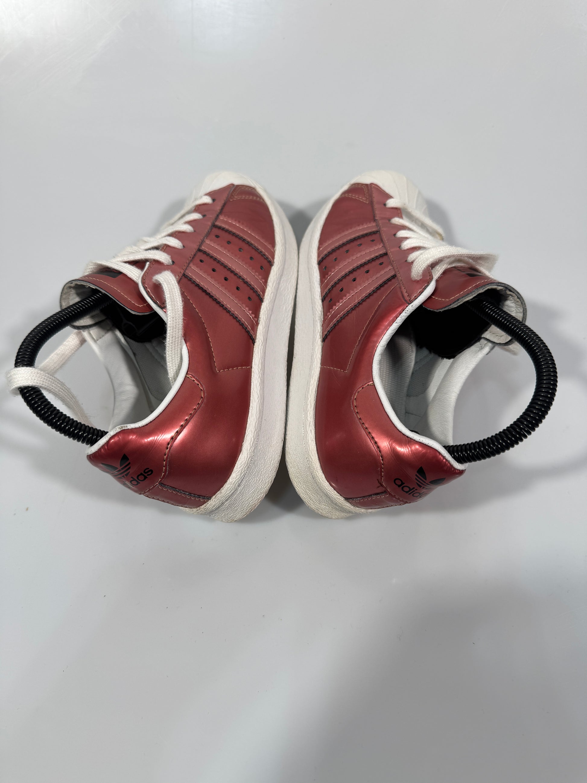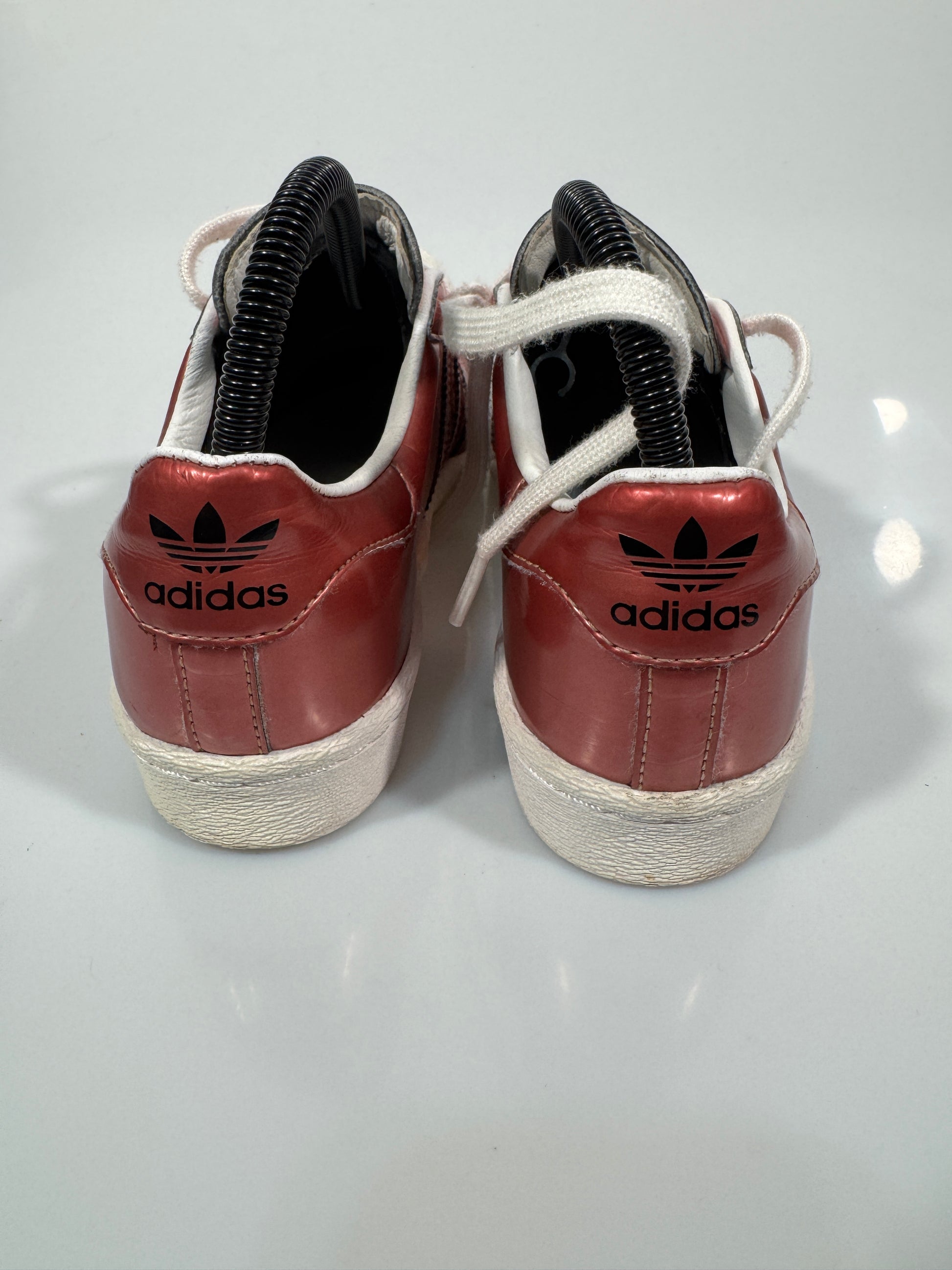 Modelul iconic Adidas Superstar revine într-o variantă modernă și stylish, cu un finisaj roșu metalizat ce atrage imediat privirile. Adidașii păstrează celebra construcție cu vârful tip „shell toe”, benzi laterale perforate și calitatea specifică brandului Adidas.