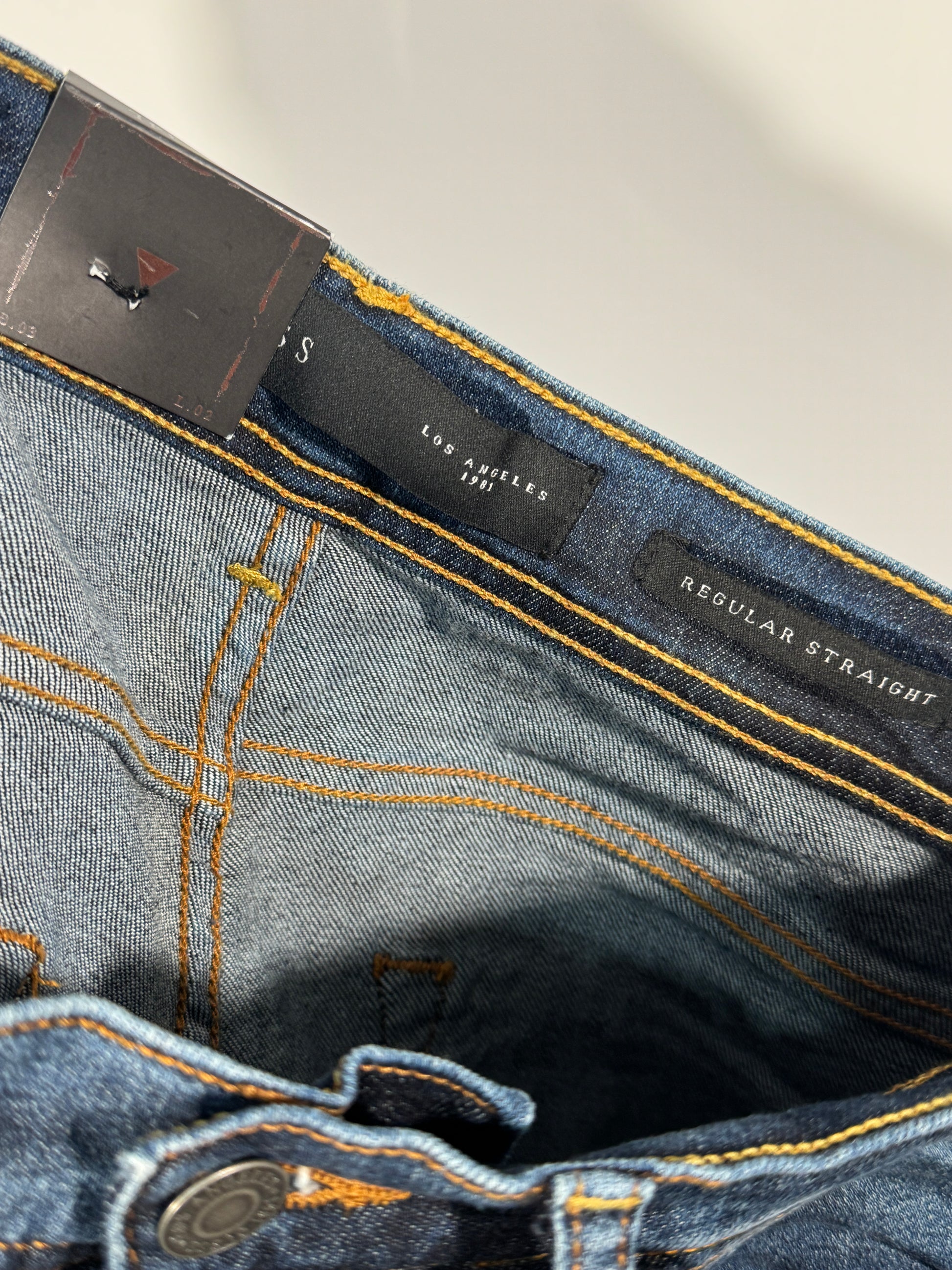 ✔️ Detalii: 5 buzunare, nasture metalic Guess, etichetă originală, fermoar frontal