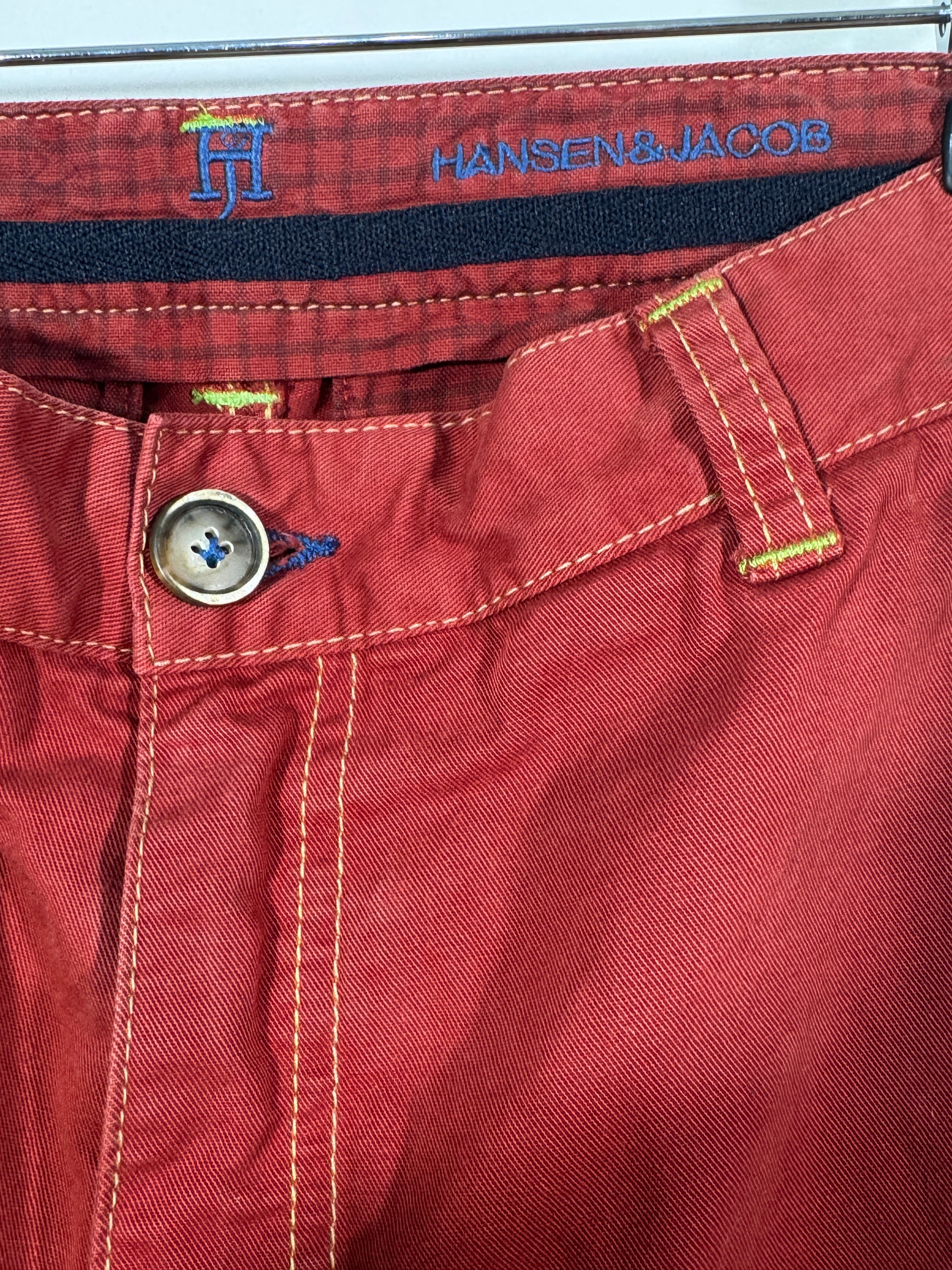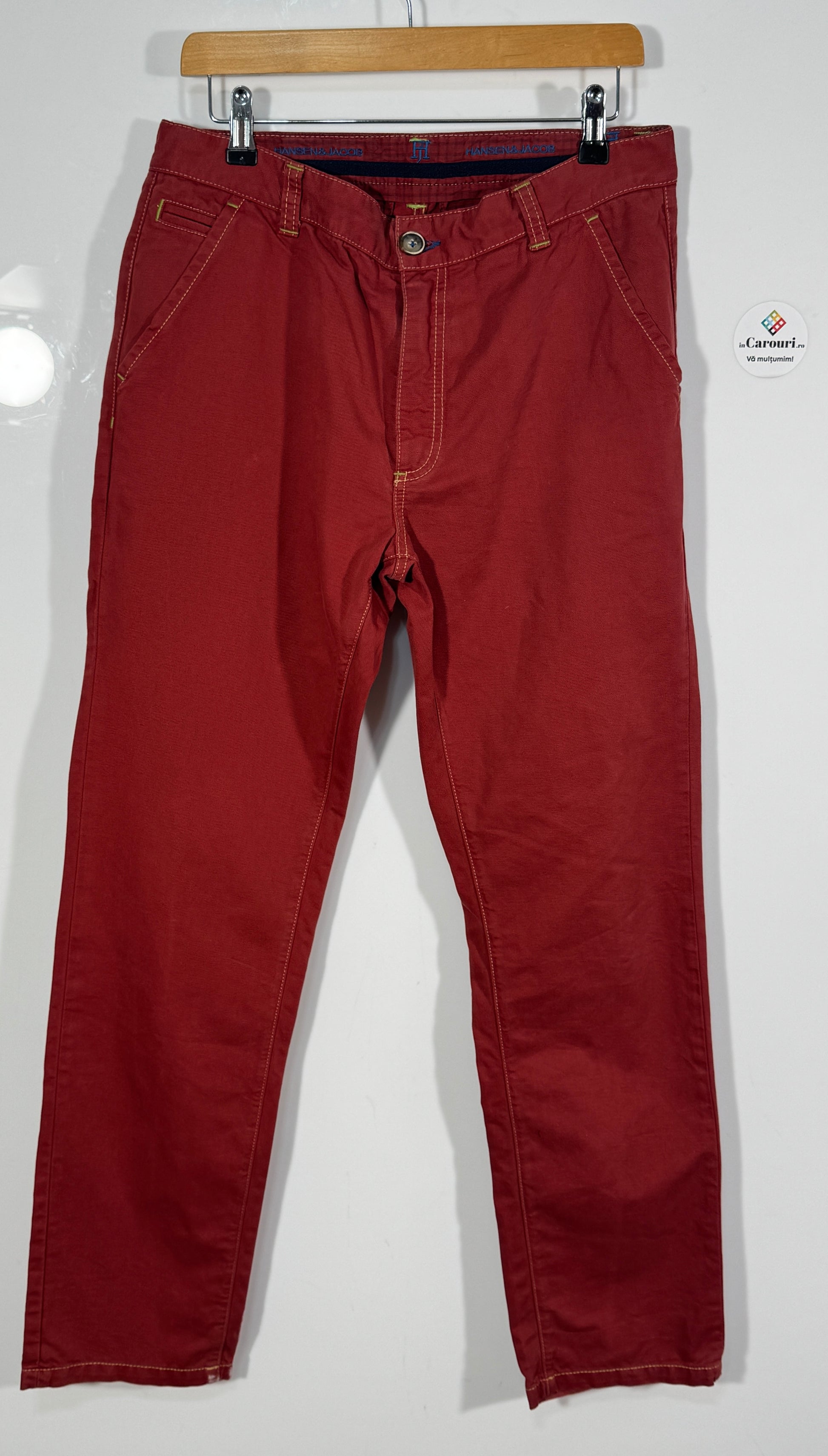 Acești blugi Hansen & Jacob sunt alegerea ideală pentru bărbații care apreciază calitatea materialelor și designul rafinat. Culoarea roșu cărămiziu adaugă un plus de personalitate oricărei ținute casual sau smart-casual.