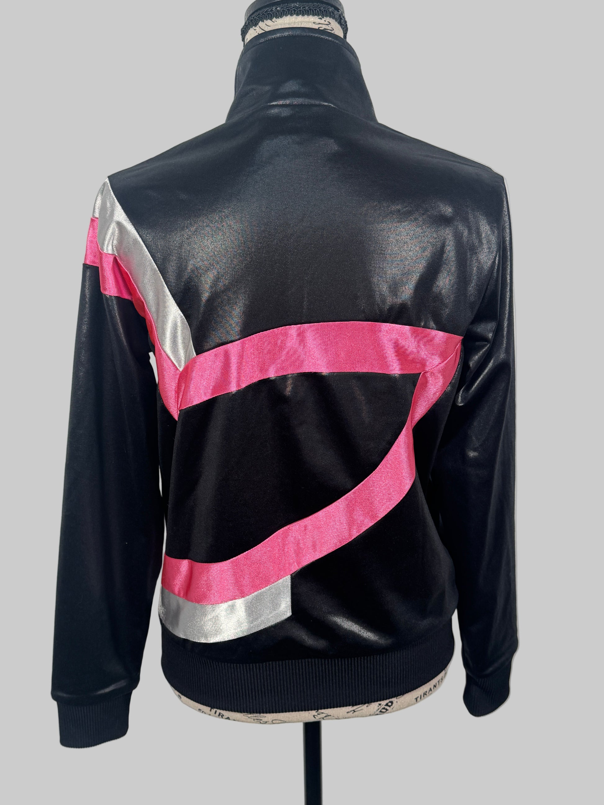 Intră într-o atmosferă autentică de old-school sport fashion cu această bluză Adidas Originals Chile, un model vintage rar, extrem de căutat de colecționari și iubitori ai stilului retro. Fabricată din materialul caracteristic shiny (efect lucios), bluza impresionează cu combinația puternică de culori negru, roz intens și argintiu metalic — exact vibe-ul iconic Chile 62.