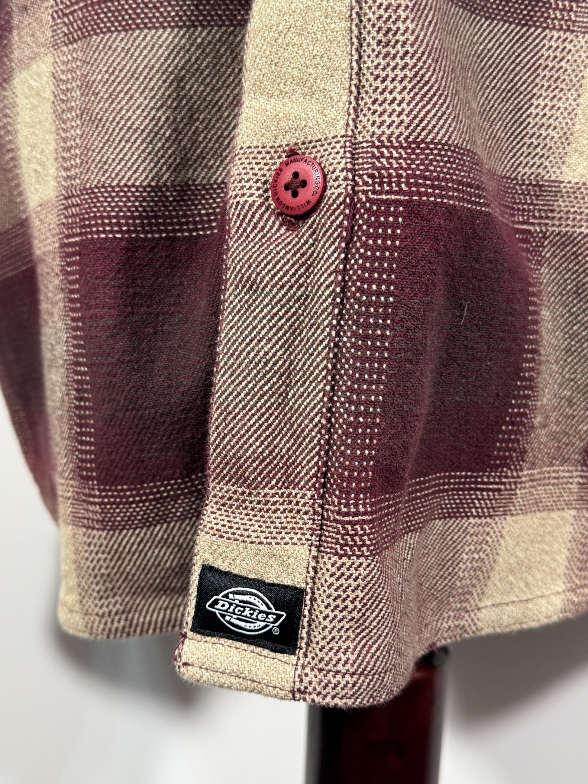 Modelul prezintă un imprimeu carouri burgundy – crem, ușor vintage, extrem de versatil și ușor de combinat în ținute casual, streetwear sau outdoor. Croiala este lejeră, durabilă, exact cum te-ai aștepta de la Dickies – brandul iconic pentru muncitori și pasionați de stil rugged.