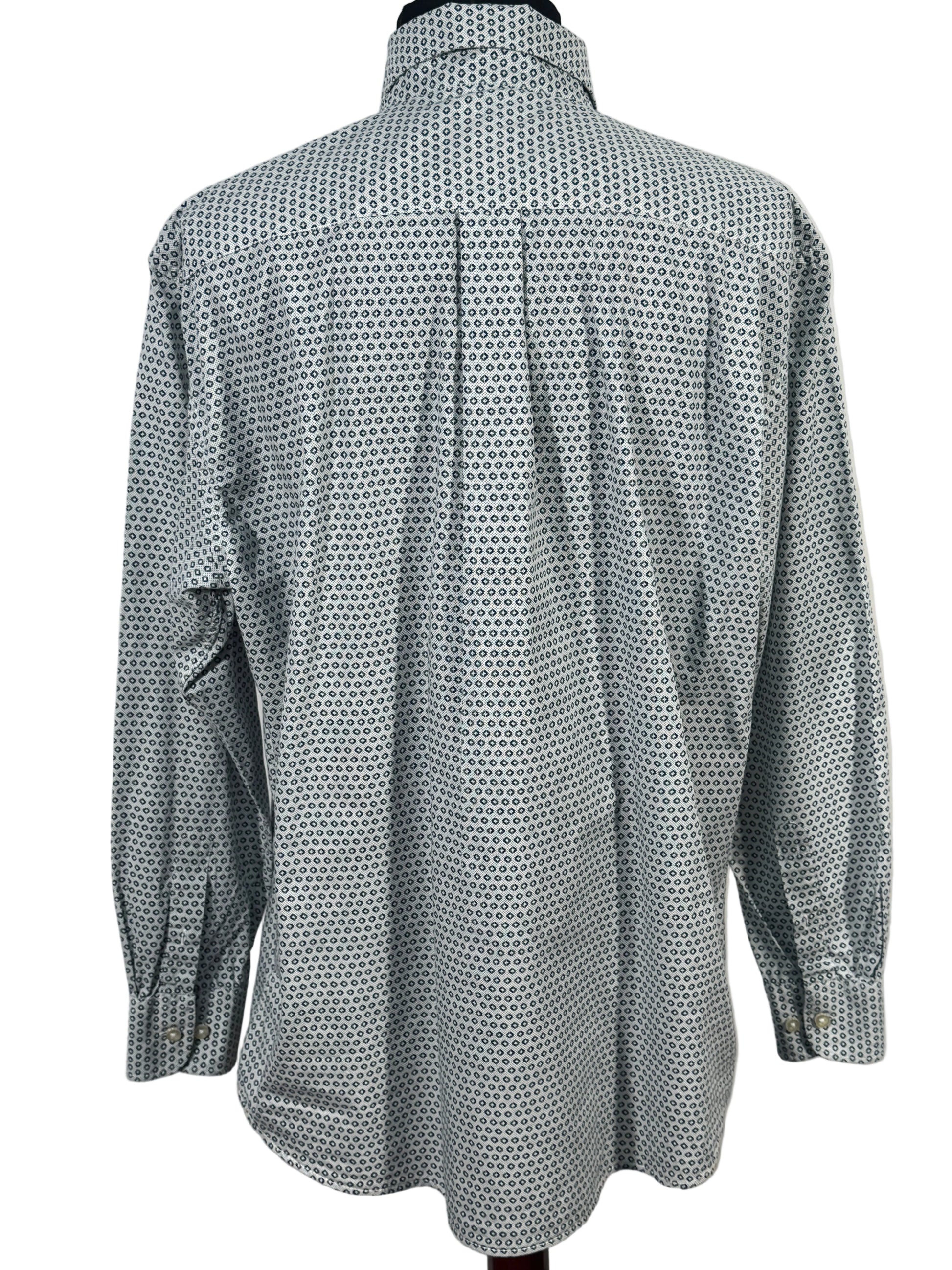 Model cu maneca lunga, guler clasic si inchidere cu nasturi pe toata lungimea. Croiala este lejera, specifica marimii XL, oferind libertate de miscare si un plus de confort. Modelul cu imprimeu fin adauga un aspect modern si usor de asortat.