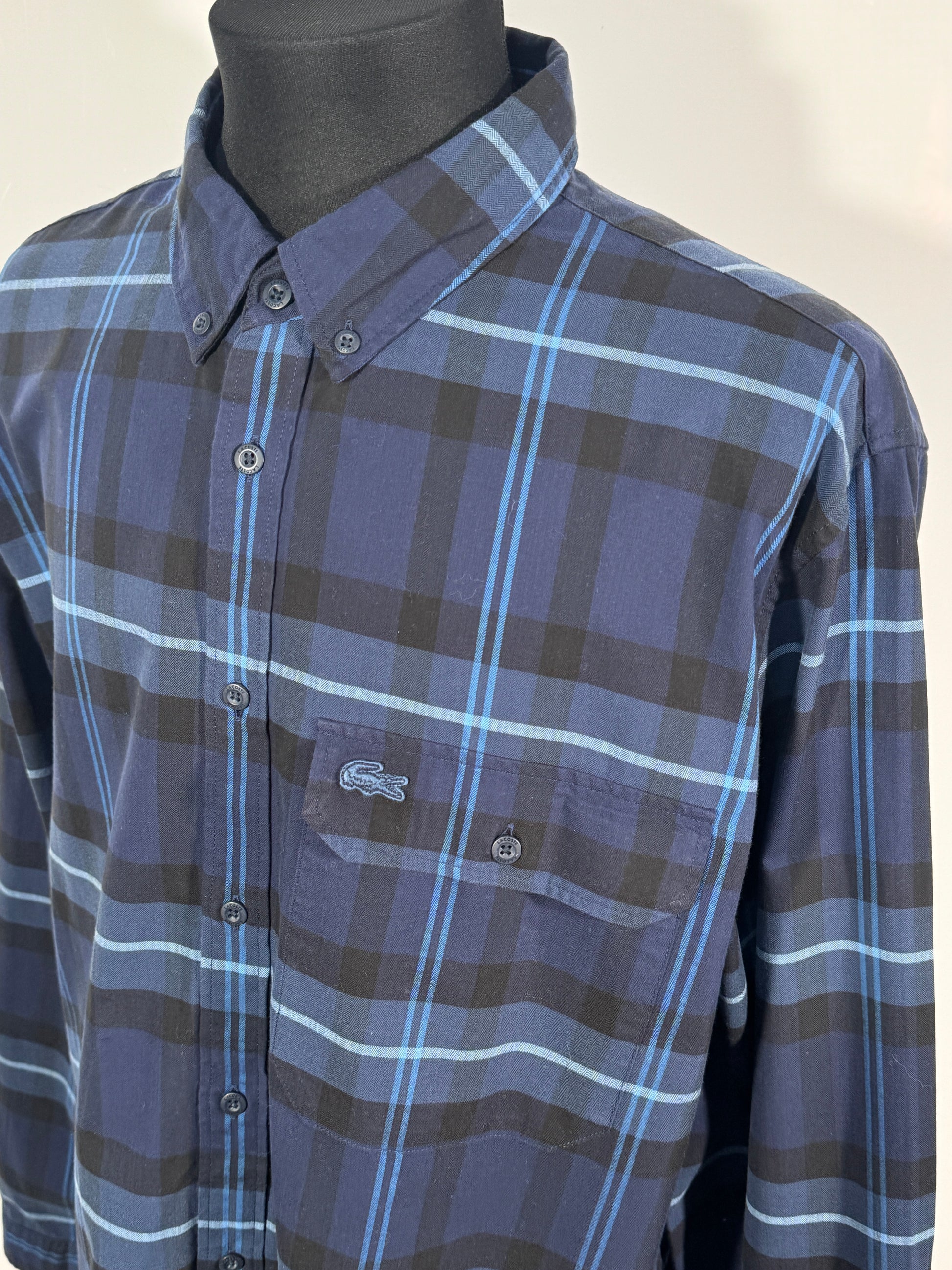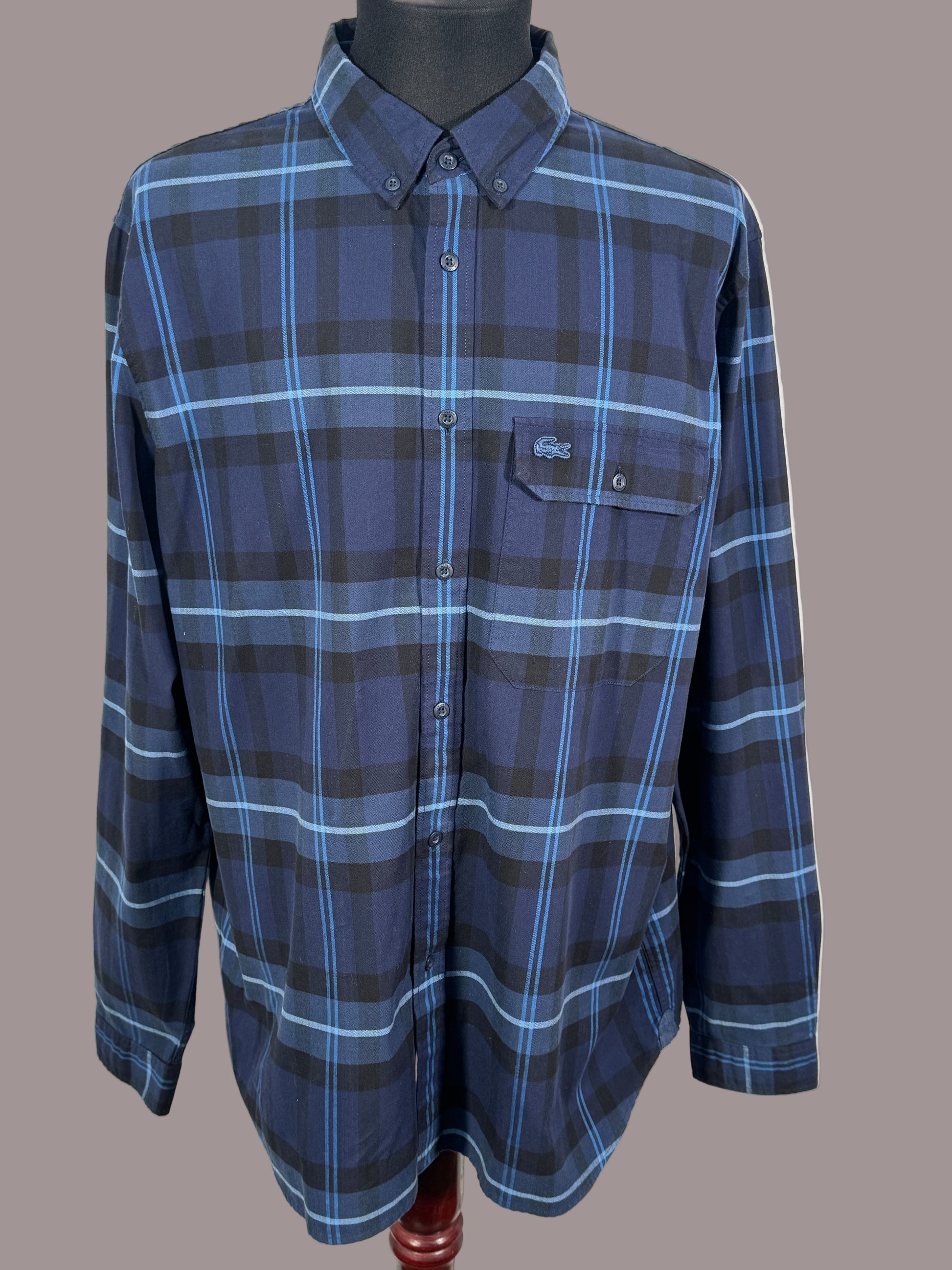 Cămașa Lacoste pentru bărbați, mărimea XL, este o alegere excelentă pentru cei care apreciază confortul și stilul clasic al brandului francez. Realizată din bumbac de calitate, oferă o textură moale și respirabilă, ideală pentru purtare zilnică. Modelul în carouri albastre și gri conferă un aer casual-elegant, perfect pentru orice ocazie.
