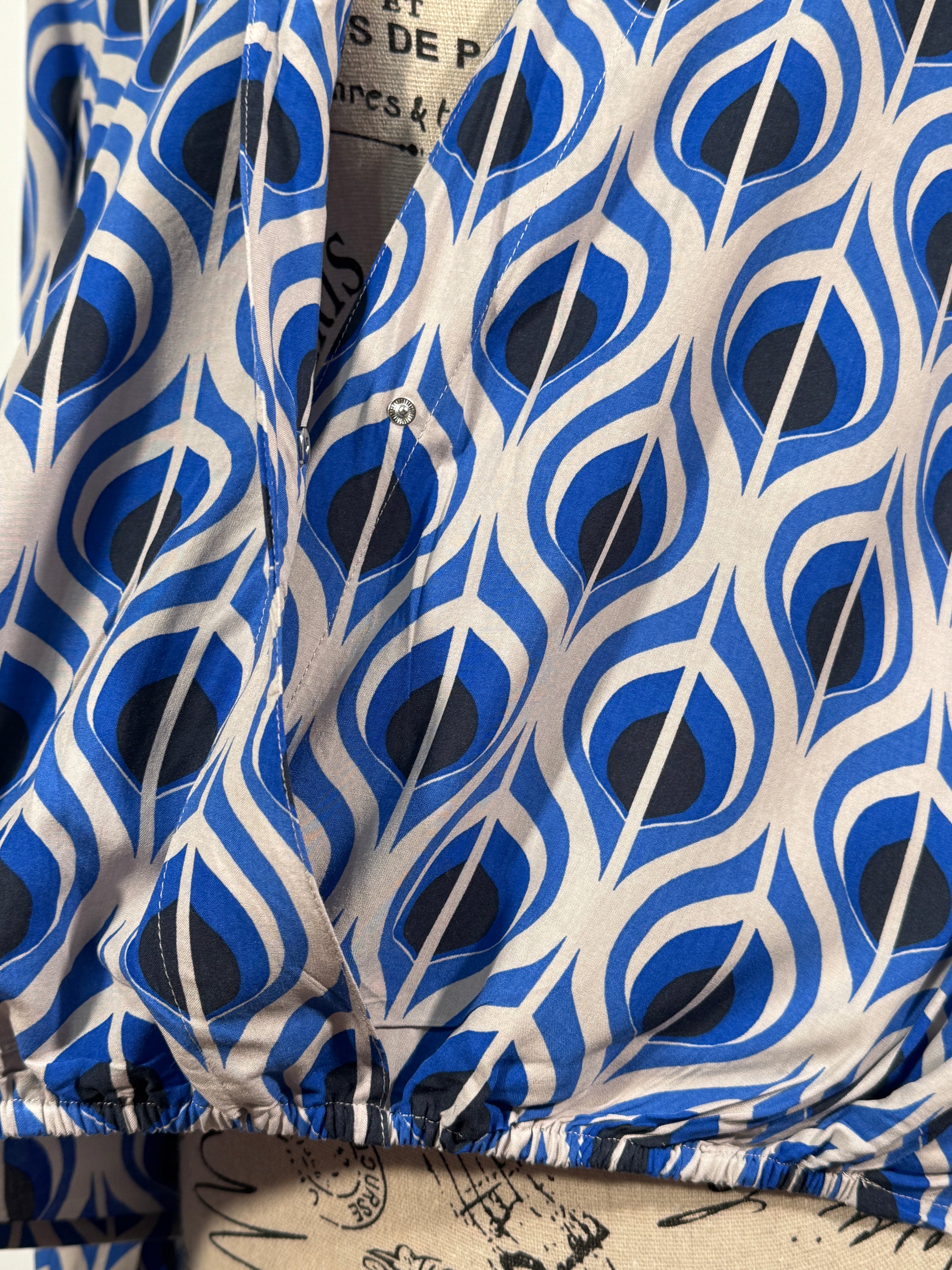 Culoare: Alb, albastru și negru – imprimeu geometric elegant