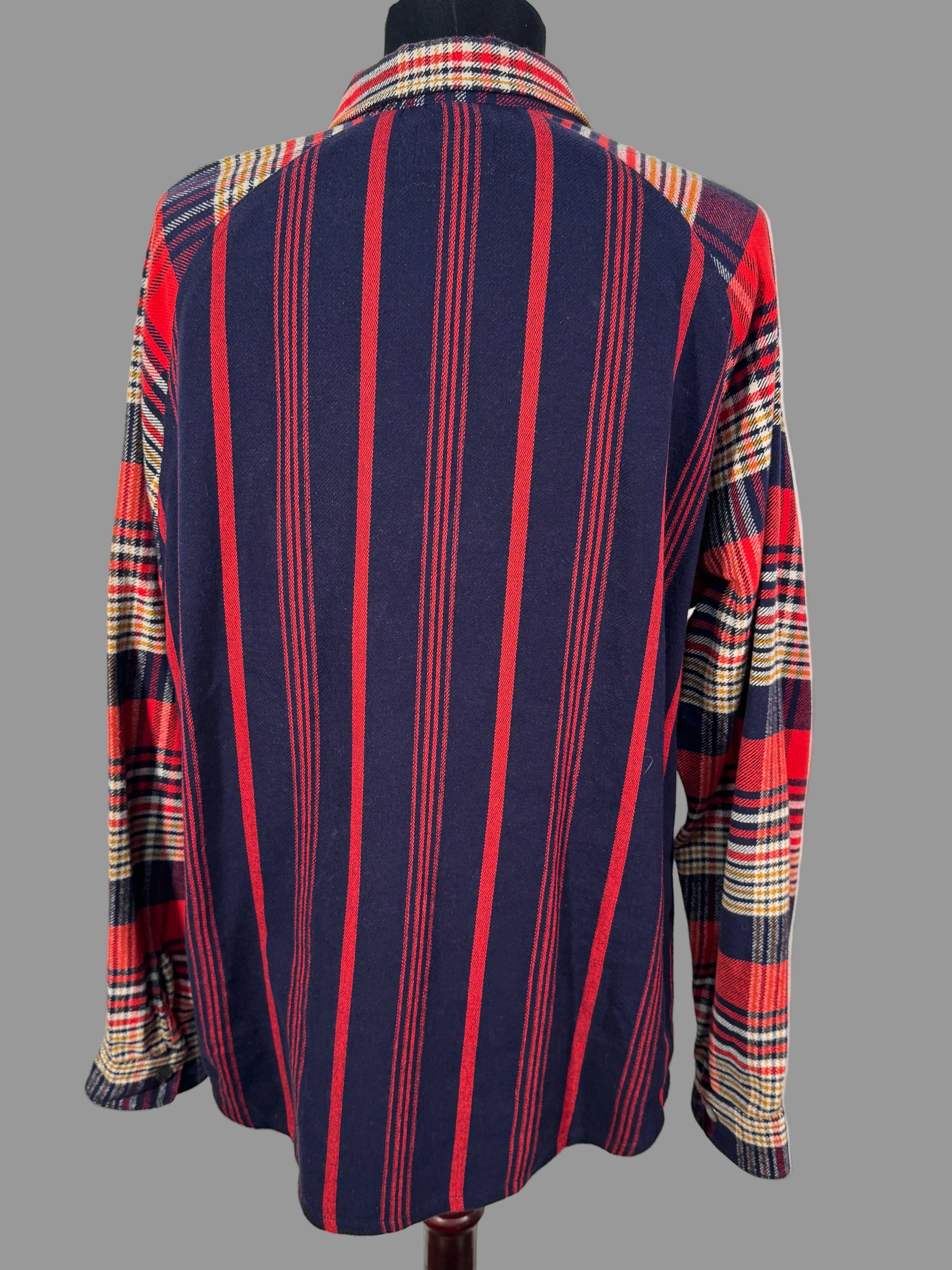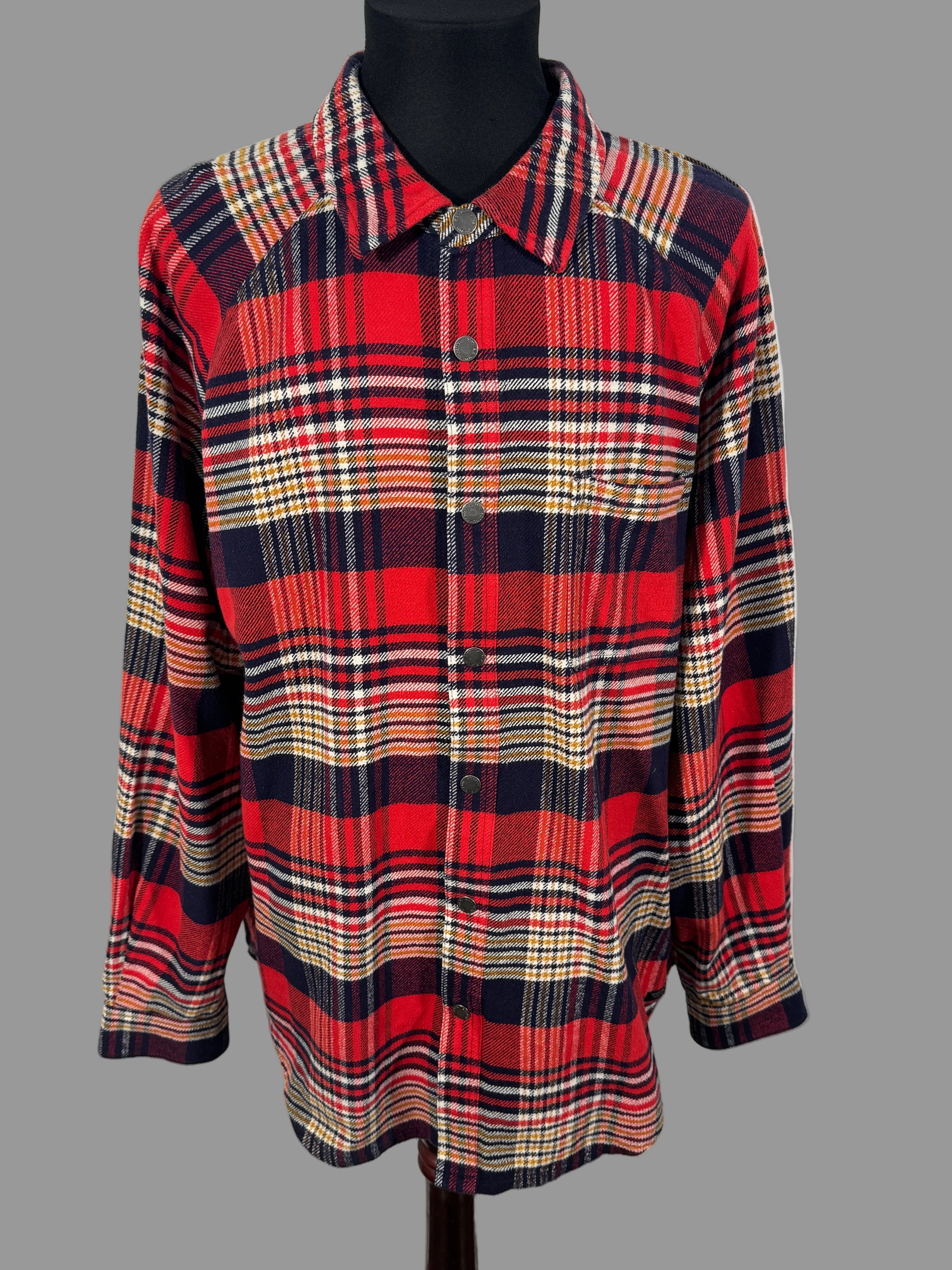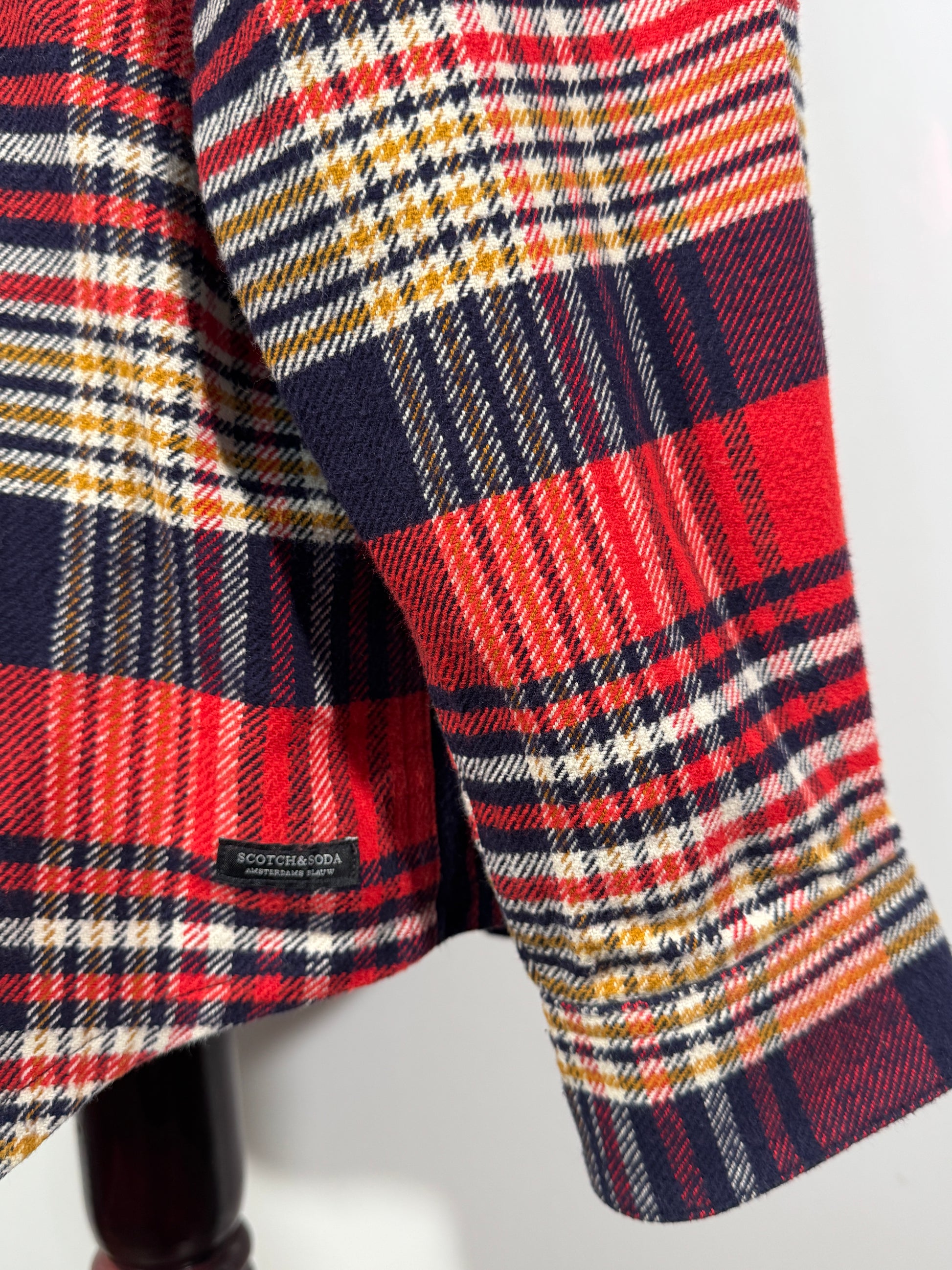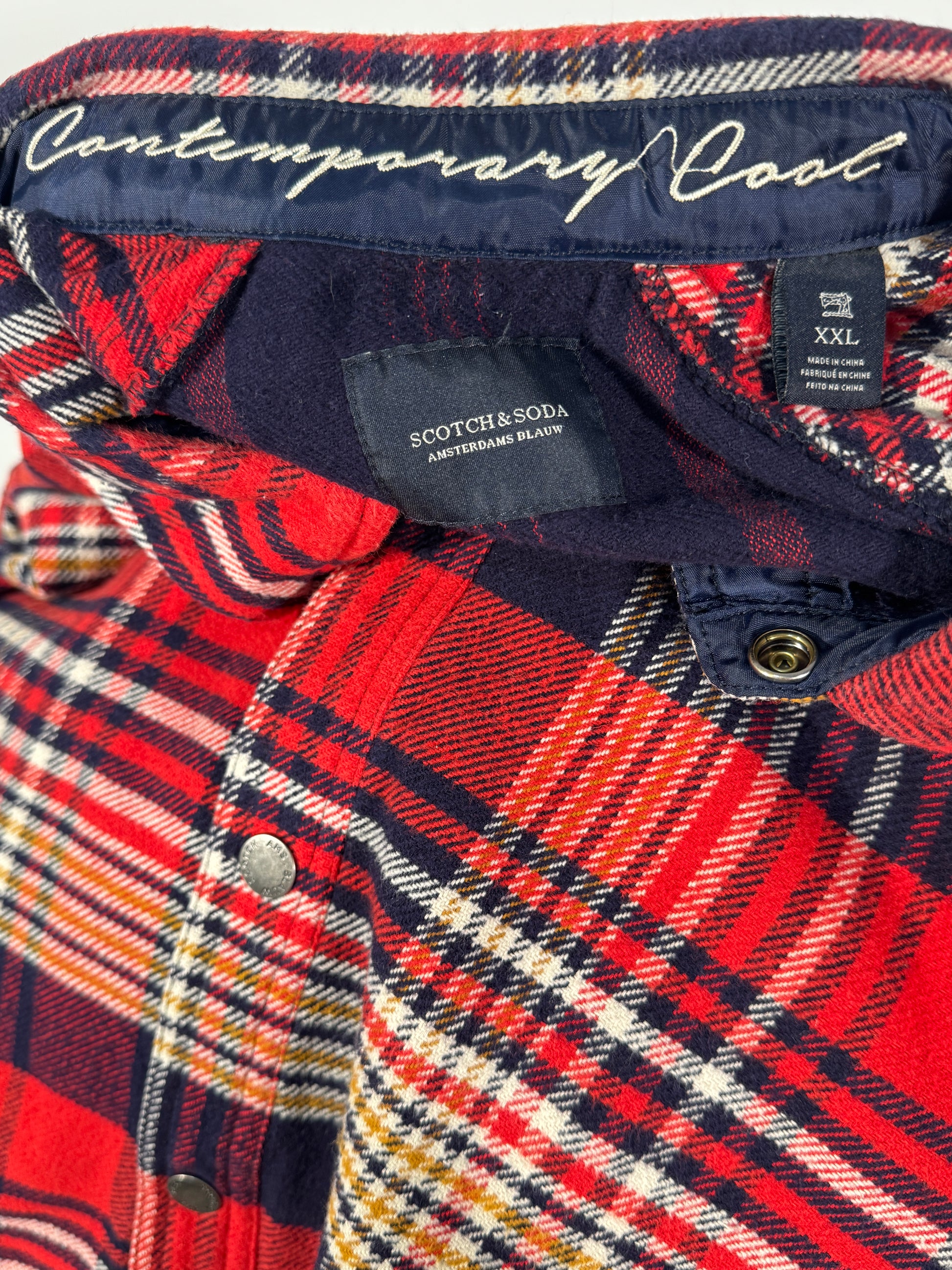 Această cămașă Scotch & Soda pentru bărbați, mărimea 2XL, impresionează prin imprimeul său tip tartan în nuanțe intense de roșu, bleumarin și crem — o combinație clasică, dar cu personalitate puternică. Materialul este moale, plăcut la atingere și excelent pentru sezonul rece, fiind ideală pentru ținute casual, street sau layered.