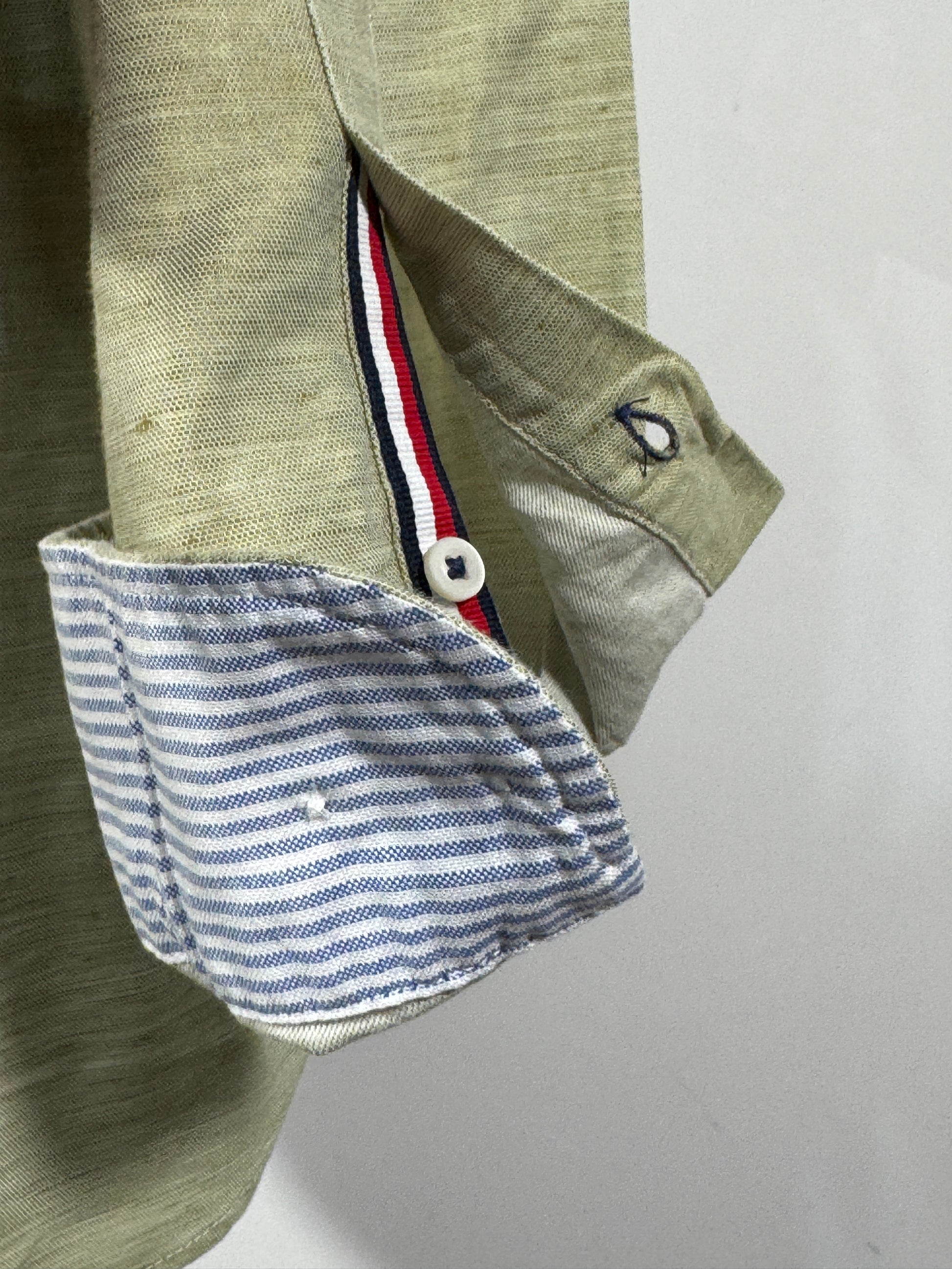 Culoarea verde deschis, cu textură discret melanj, alături de logo-ul clasic Hilfiger brodat pe