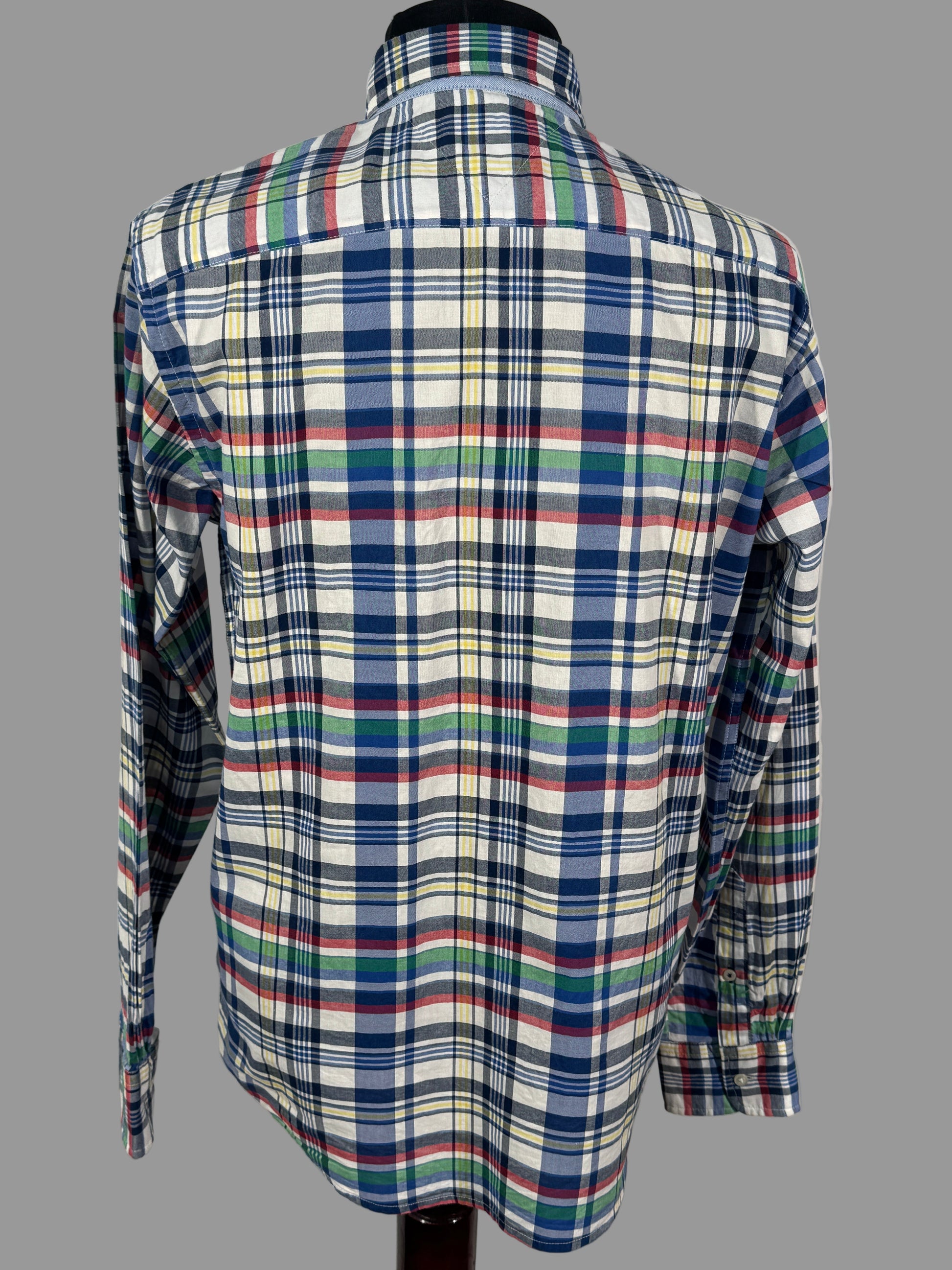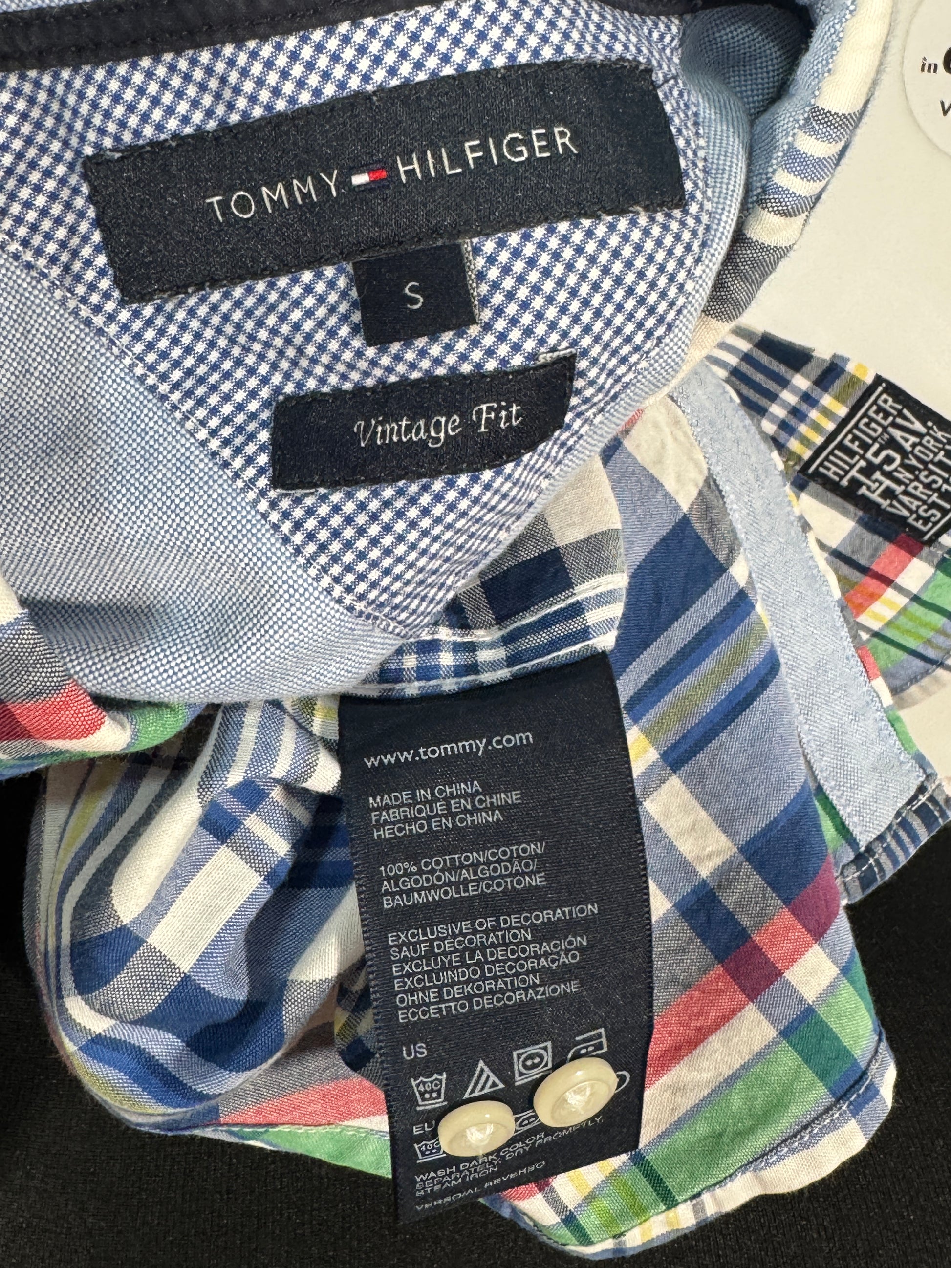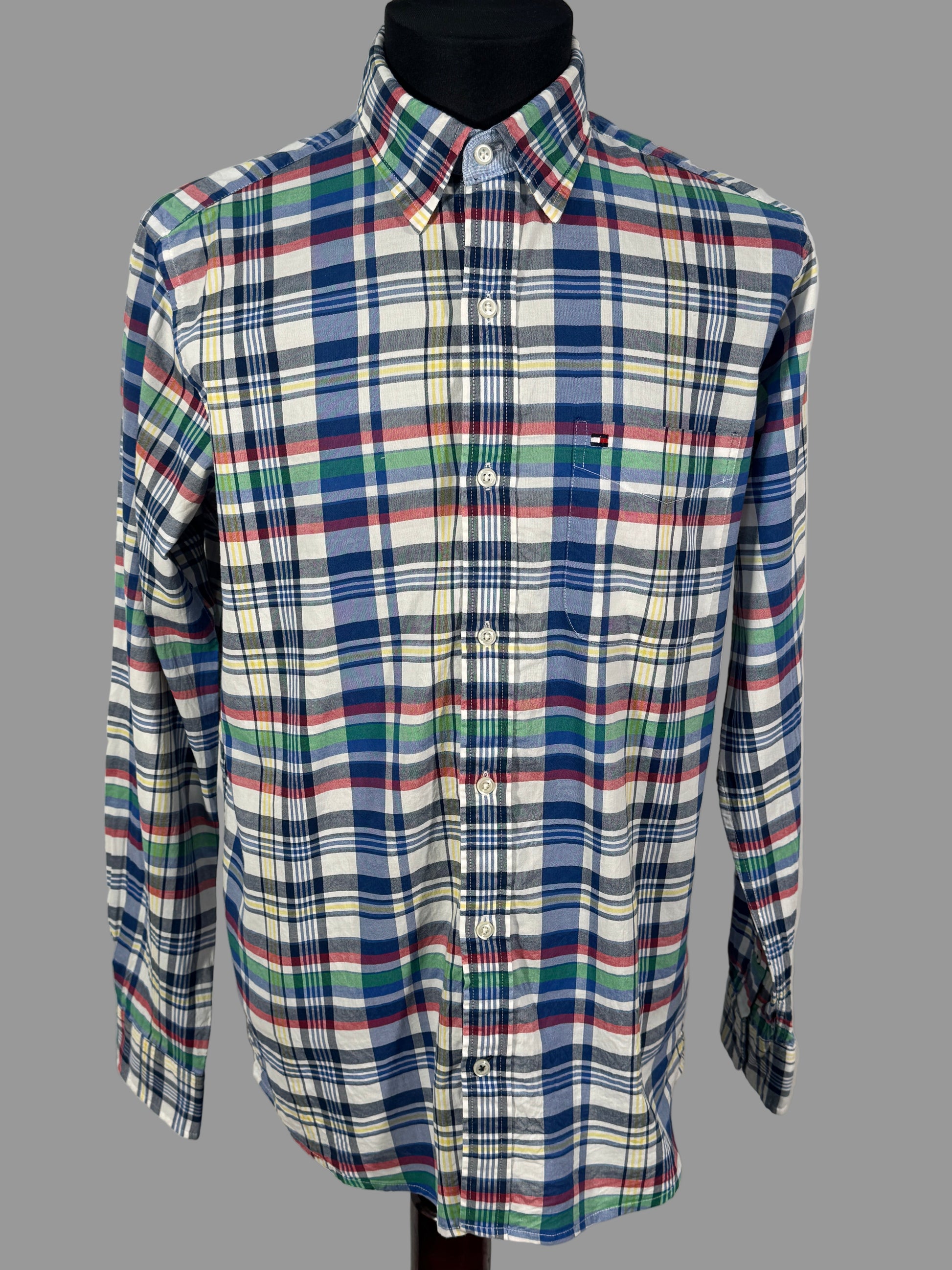 Cămașă Tommy Hilfiger pentru bărbați, mărimea S, realizată din bumbac de calitate, cu model clasic în carouri multicolore (albastru, verde, roșu și galben). Croială regular fit, confortabilă, ideală pentru ținute casual și smart-casual. Logo-ul discret Tommy Hilfiger este brodat pe piept.