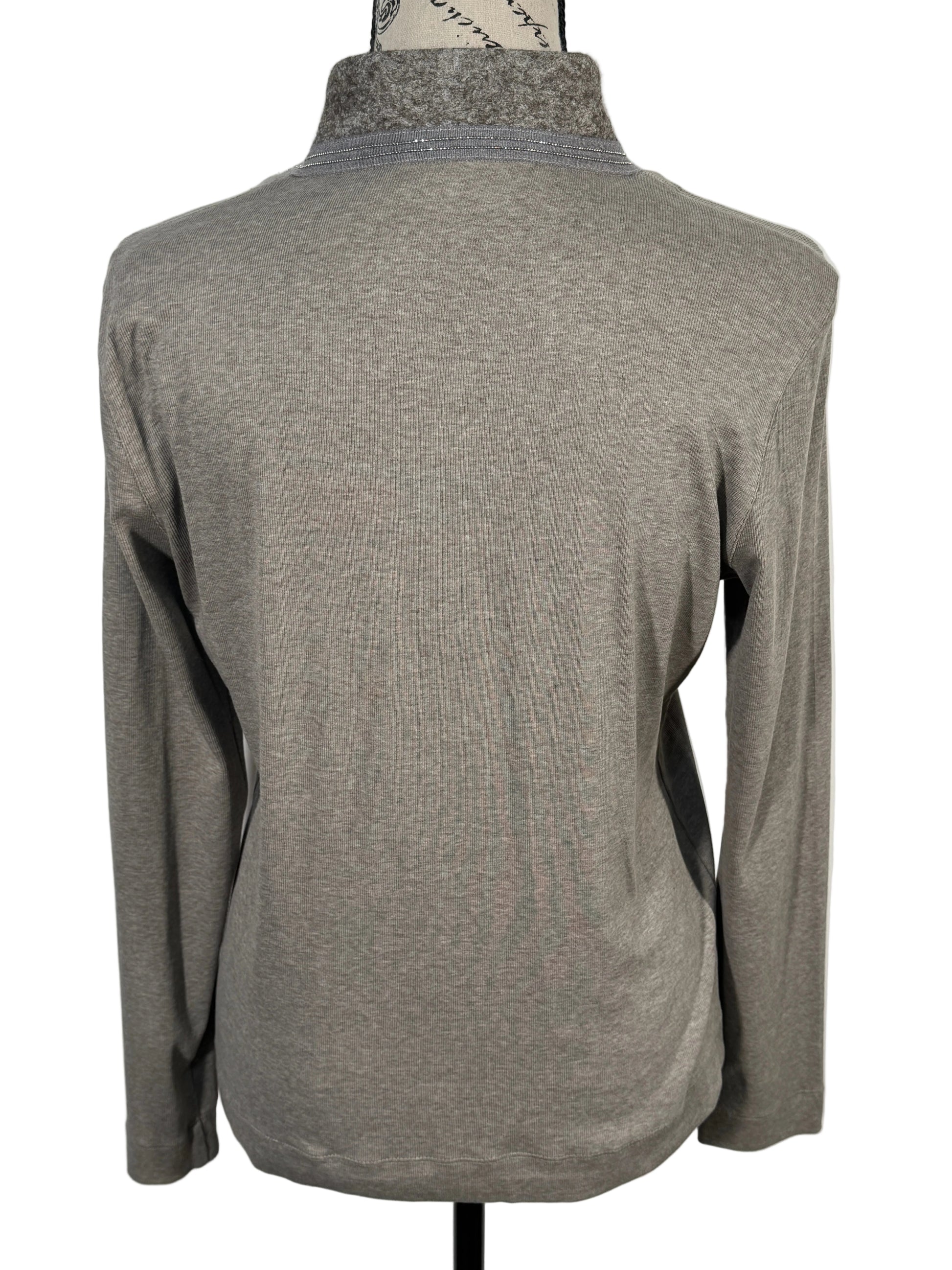 Elevează-ți garderoba cu această piesă sofisticată semnată Fabiana Filippi, simbolul luxului discret italian. Acest cardigan tip sacou, într-o nuanță versatilă de gri taupe, îmbină croiala impecabilă cu detalii rafinate la nivelul gulerului, fiind piesa ideală pentru o ținută office sau elegantă.