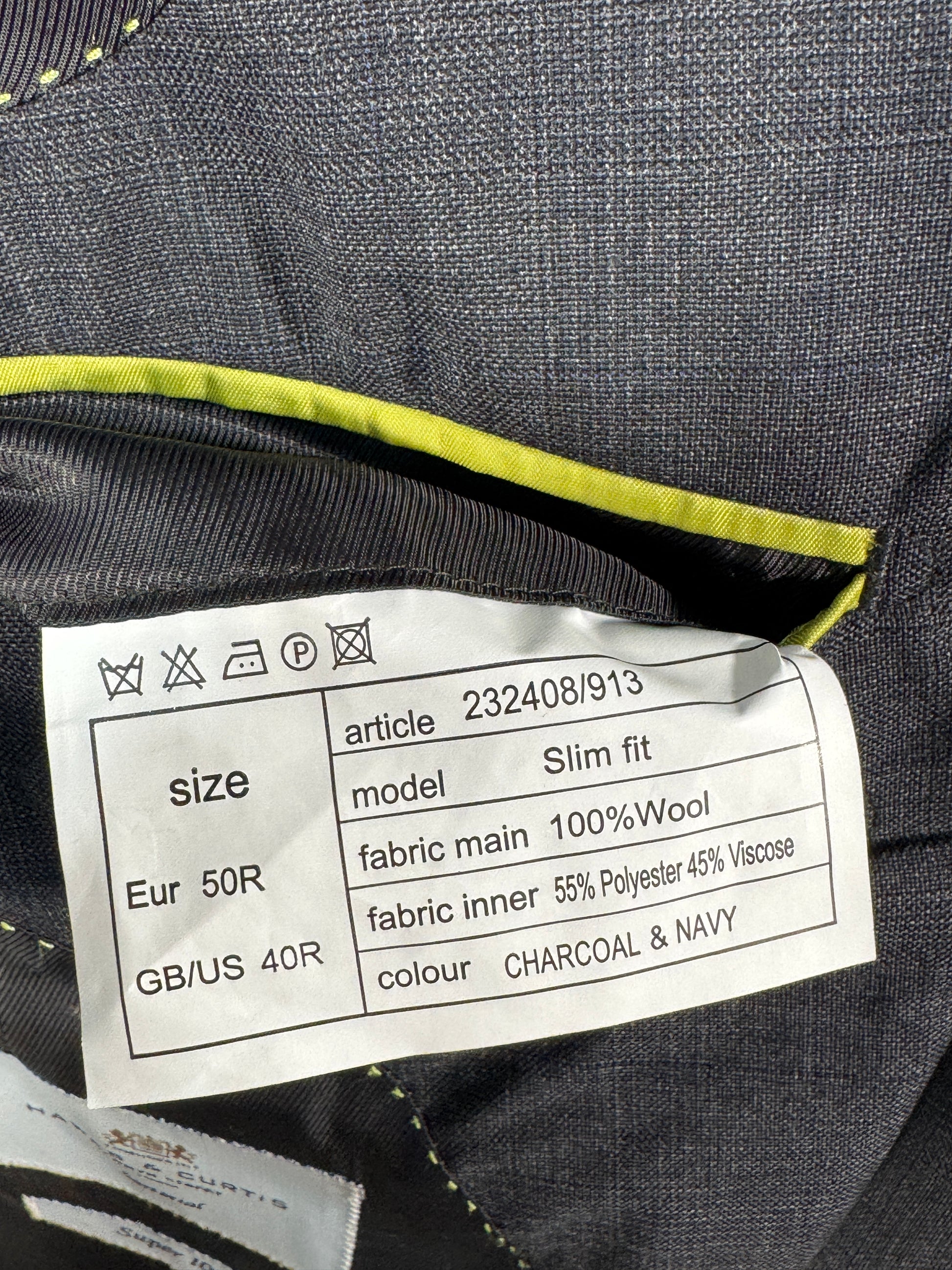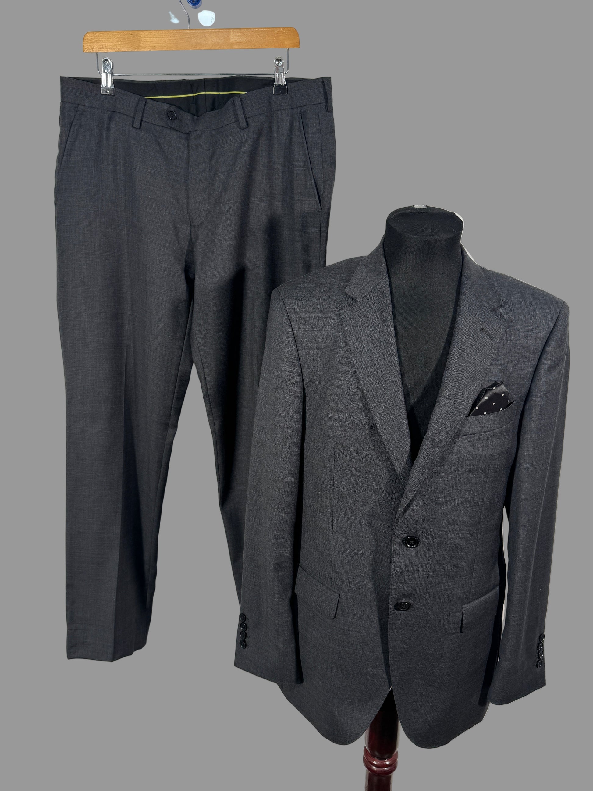 Costum elegant Hawes & Curtis London, realizat integral din lână fină de calitate superioară, ideal pentru evenimente formale, birou sau ocazii speciale. O piesă clasică, rafinată, ce reflectă eleganța britanică și atenția la detalii specifică brandului.