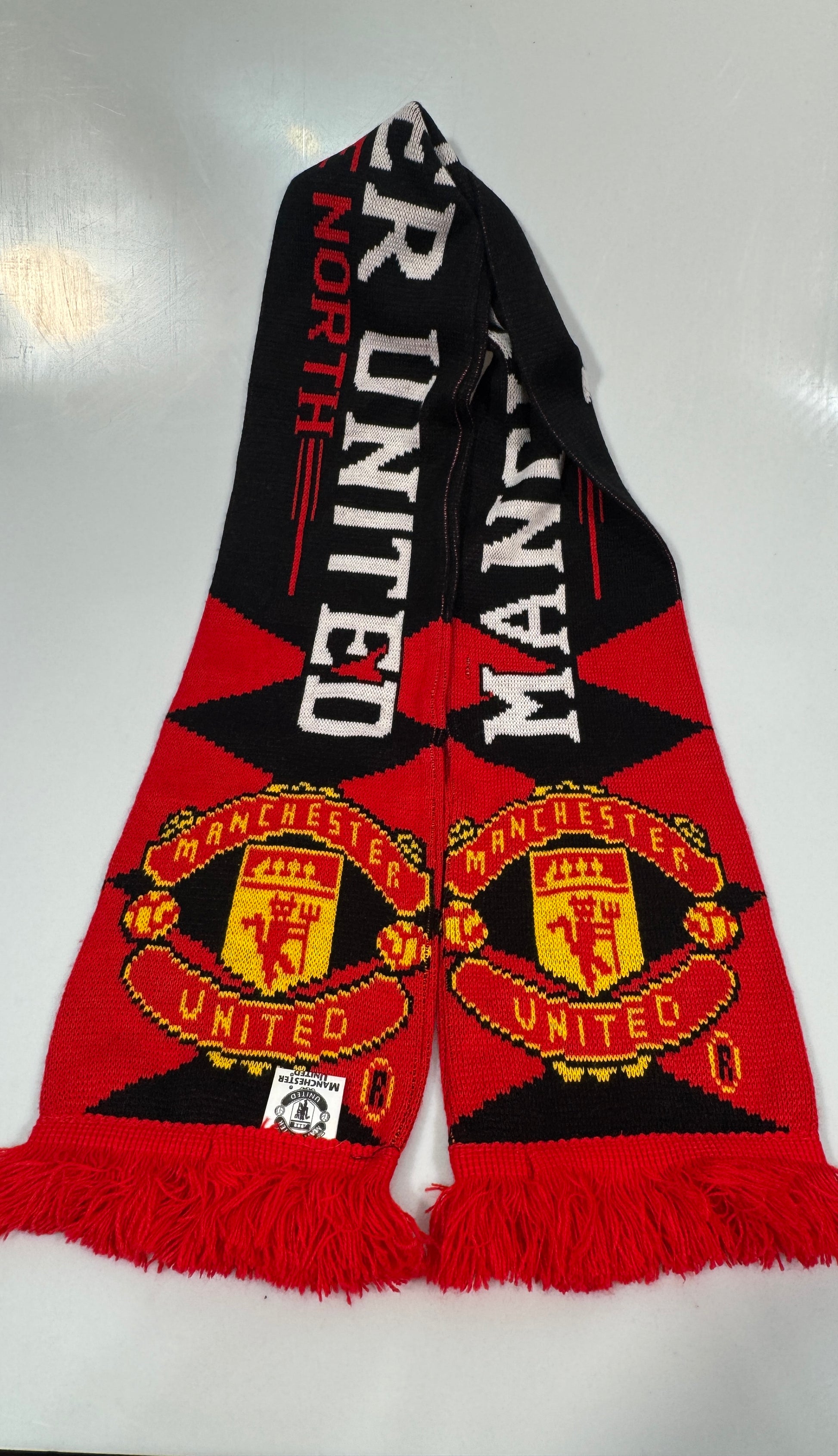 Designul este intens și plin de personalitate, în culorile clasice ale echipei – roșu, negru și galben – cu logo-ul iconic Manchester United brodat pe ambele capete. Franjurii de la extremități adaugă un plus de stil, iar lungimea generoasă permite purtarea atât în stil clasic, cât și înfășurat pentru ex