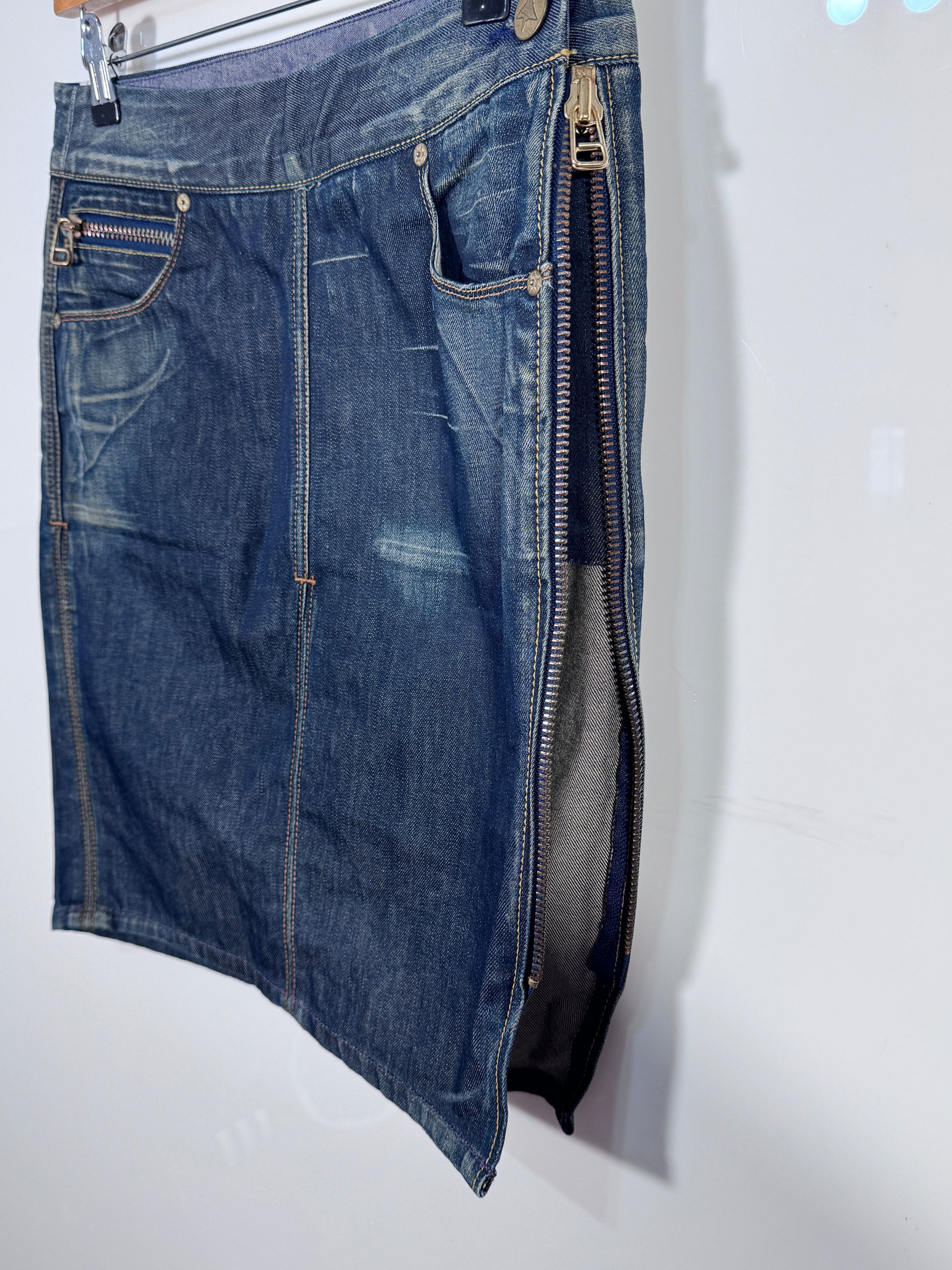 Detalii: Produsul se află într-o stare foarte buna-second hand. Denimul nu prezintă semne de uzură, pete sau decolorări neintenționate. Accesoriile metalice sunt strălucitoare și funcționale.