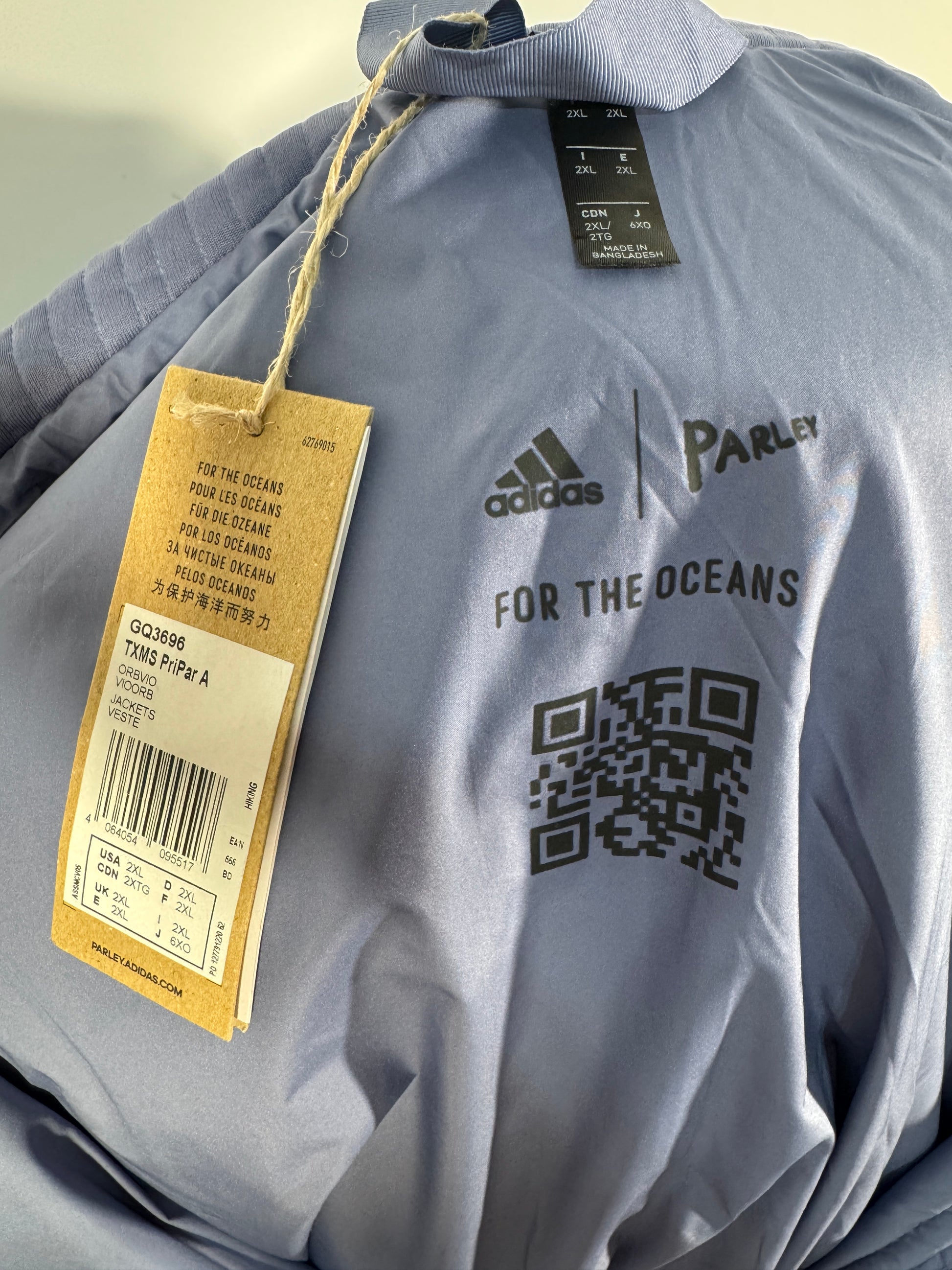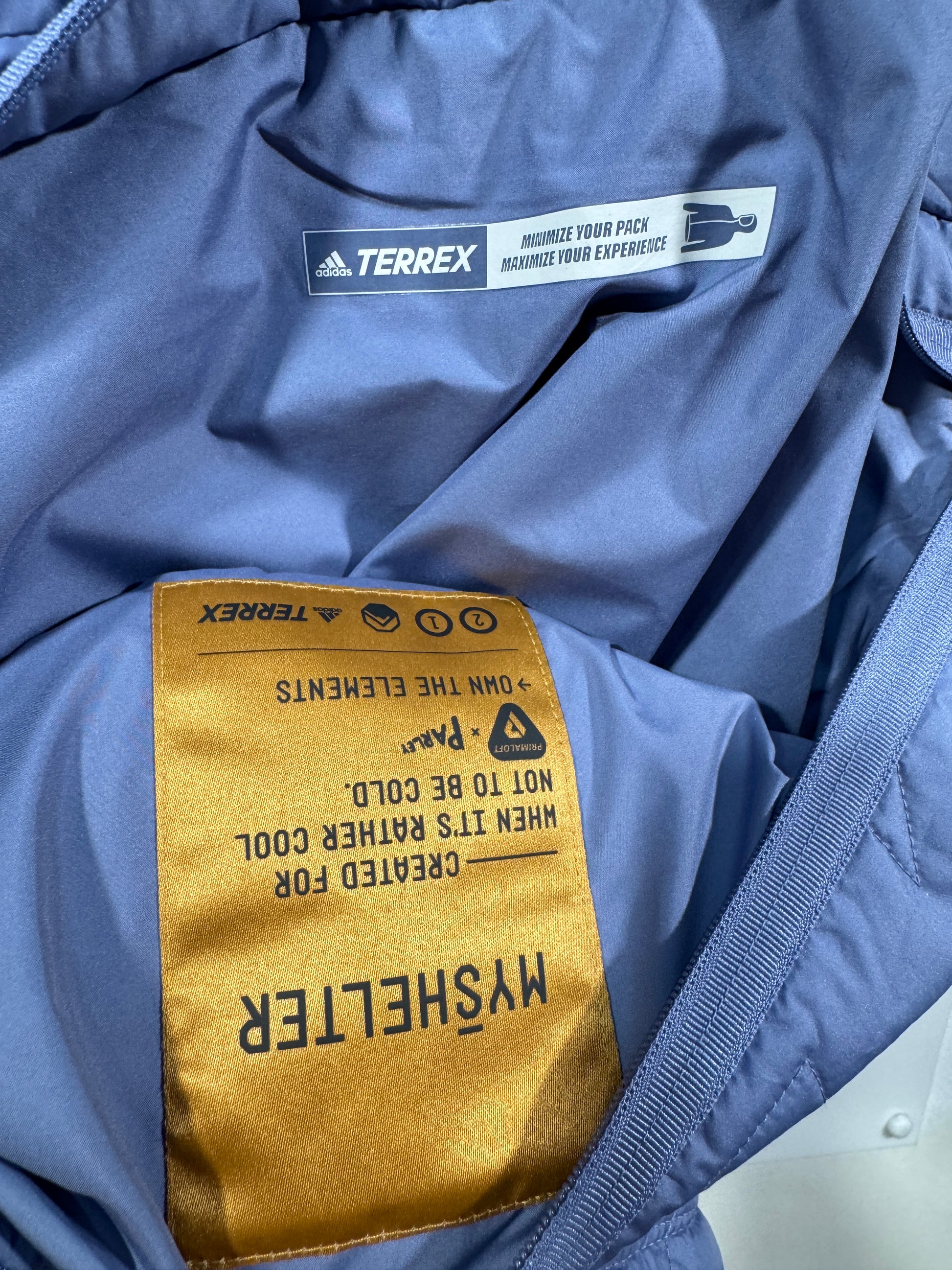 Materialul exterior este realizat parțial cu Parley Ocean Plastic, o inițiativă eco Adidas, iar izolarea termică Primaloft asigură căldură remarcabilă fără volum și fără greutate suplimentară.