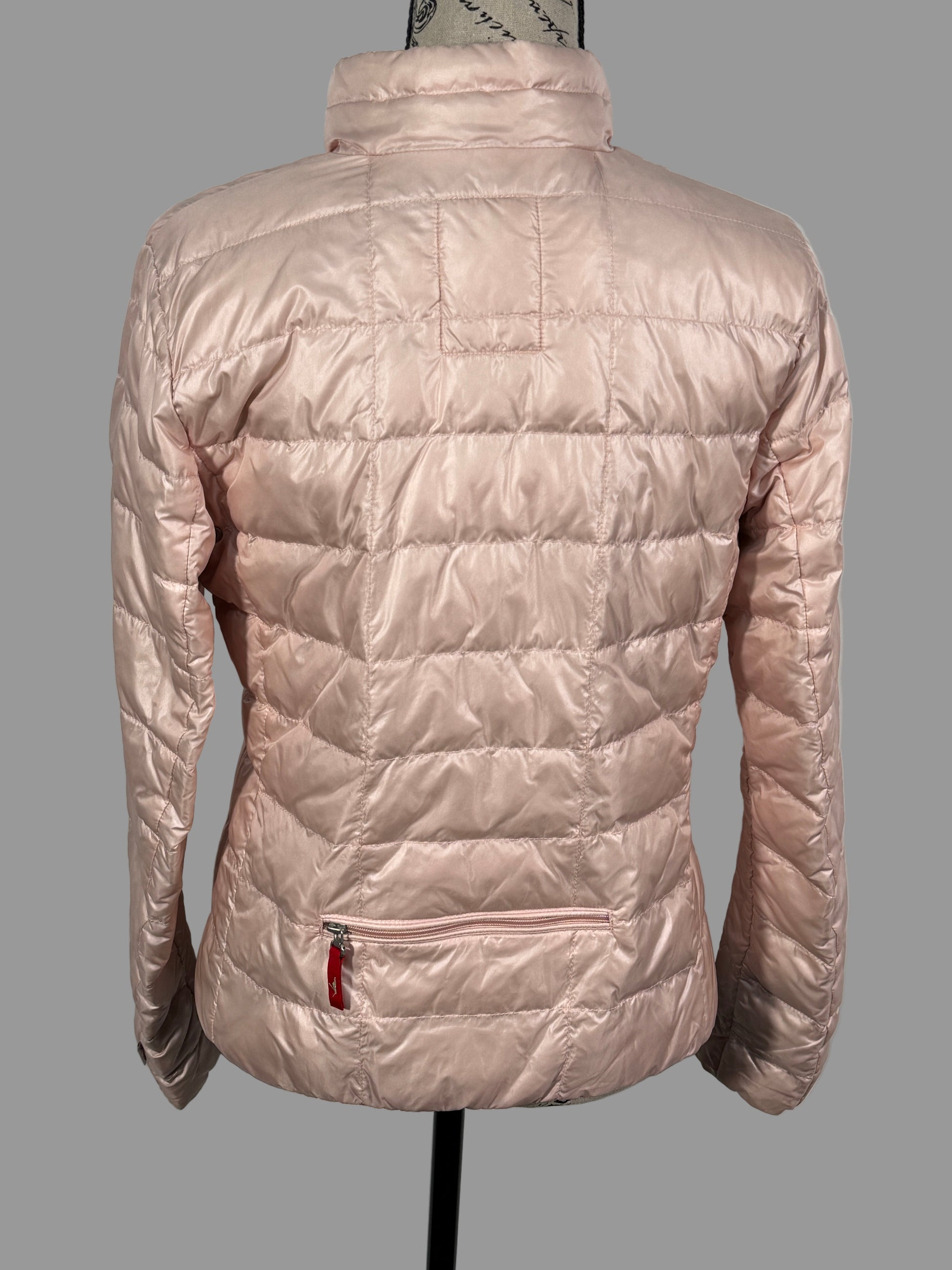 Geacă damă căptușită cu puf natural 80% și pană 20%, extrem de ușoară și călduroasă, ideală pentru sezonul rece. Design modern și feminin, într-o nuanță elegantă de roz pal, perfect de asortat atât la ținutele casual, cât și la cele de oraș.