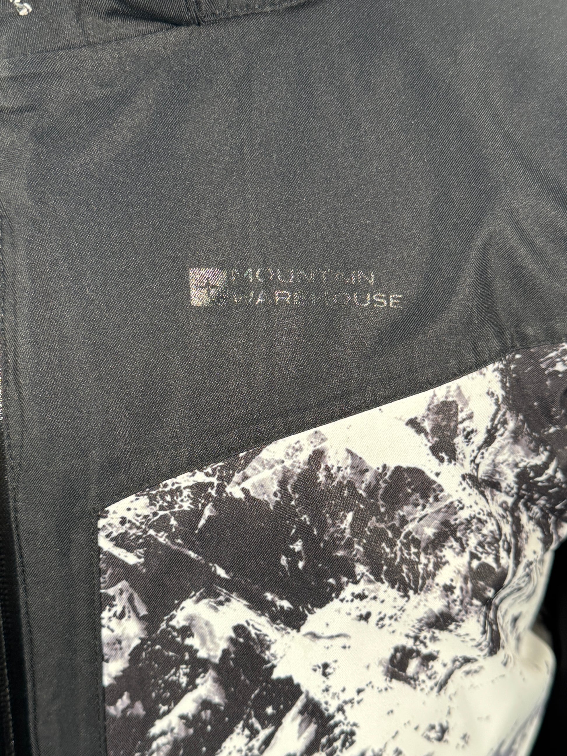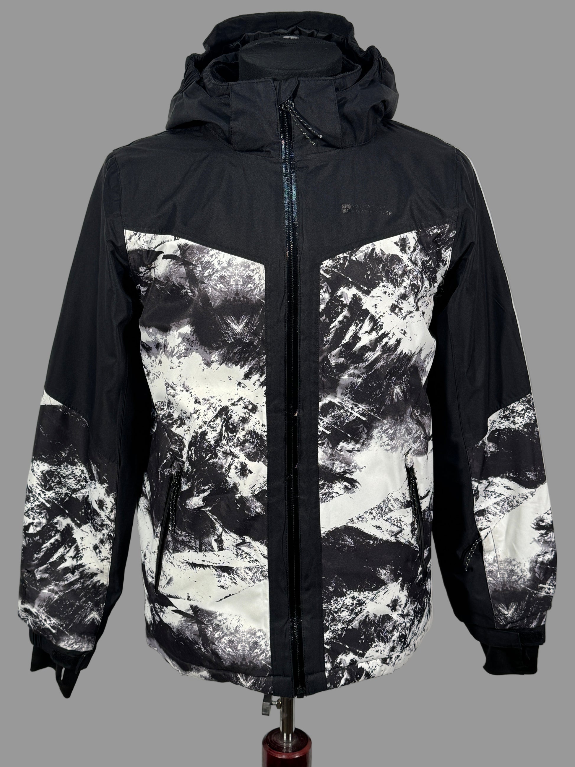 Geacă Mountain Warehouse Waterproof pentru bărbați, mărimea 13 ani ideală pentru drumeții, oraș sau sport în aer liber. Model cu design modern alb-negru tip mountain print, realizat din materiale rezistente la vânt și ploaie.
