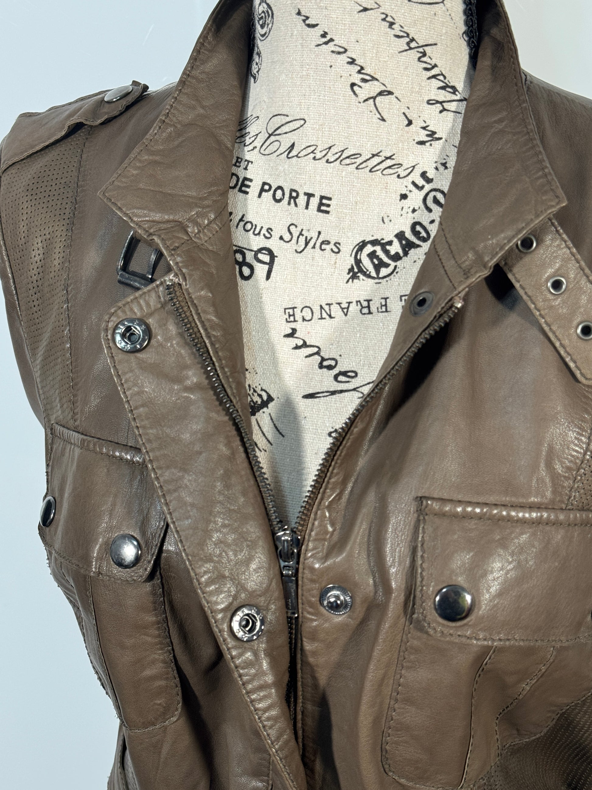 Material: 100% Piele naturală, oferind durabilitate și protecție împotriva vântului.