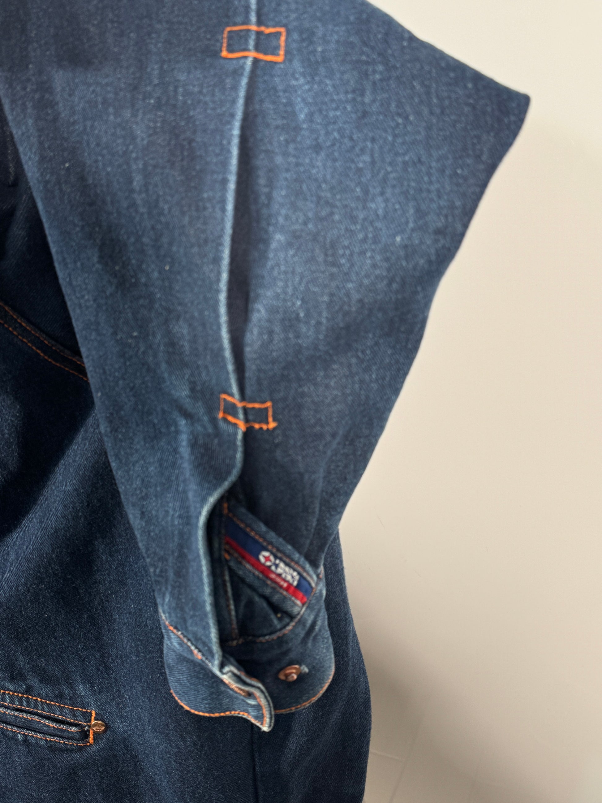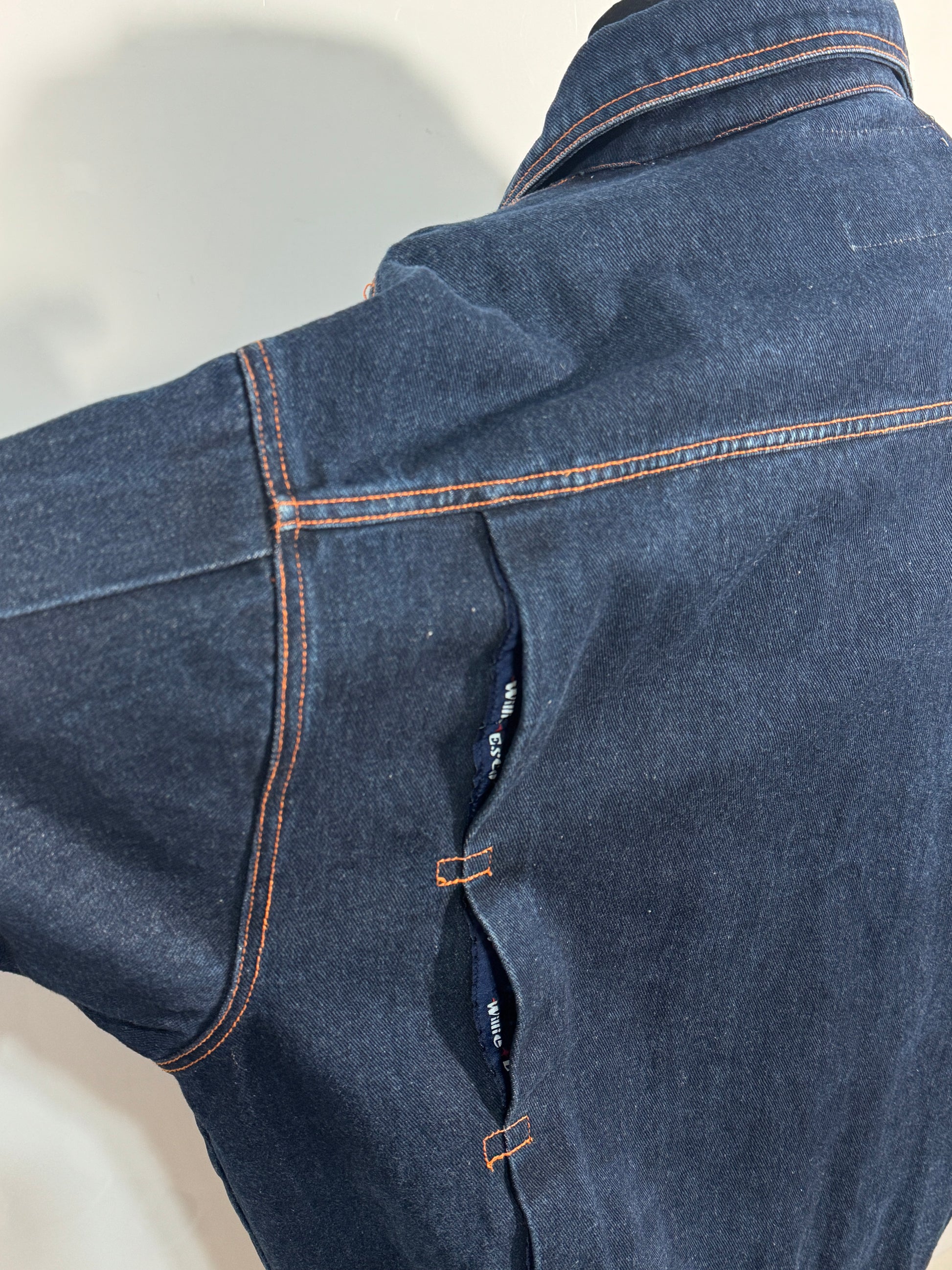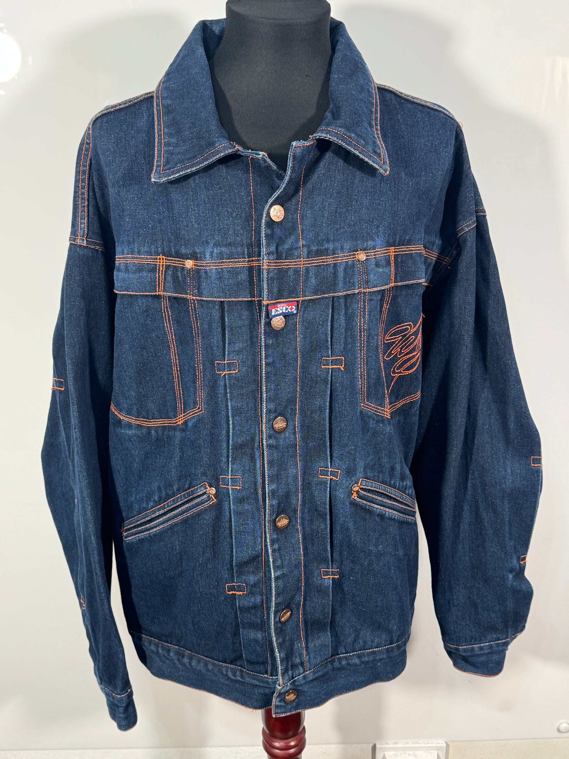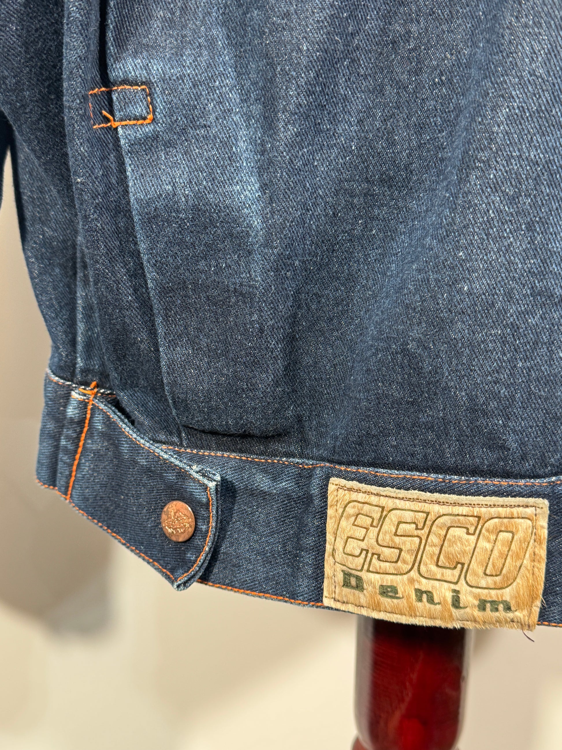 Geacă vintage autentică marca Esco, realizată din denim rezistent, cu design clasic și cusături contrastante. Ideală pentru un look retro sau casual, ușor de asortat cu jeanși, pantaloni cargo sau trening. O piesă versatilă și confortabilă, potrivită pentru sezonul primăvară-toamnă.