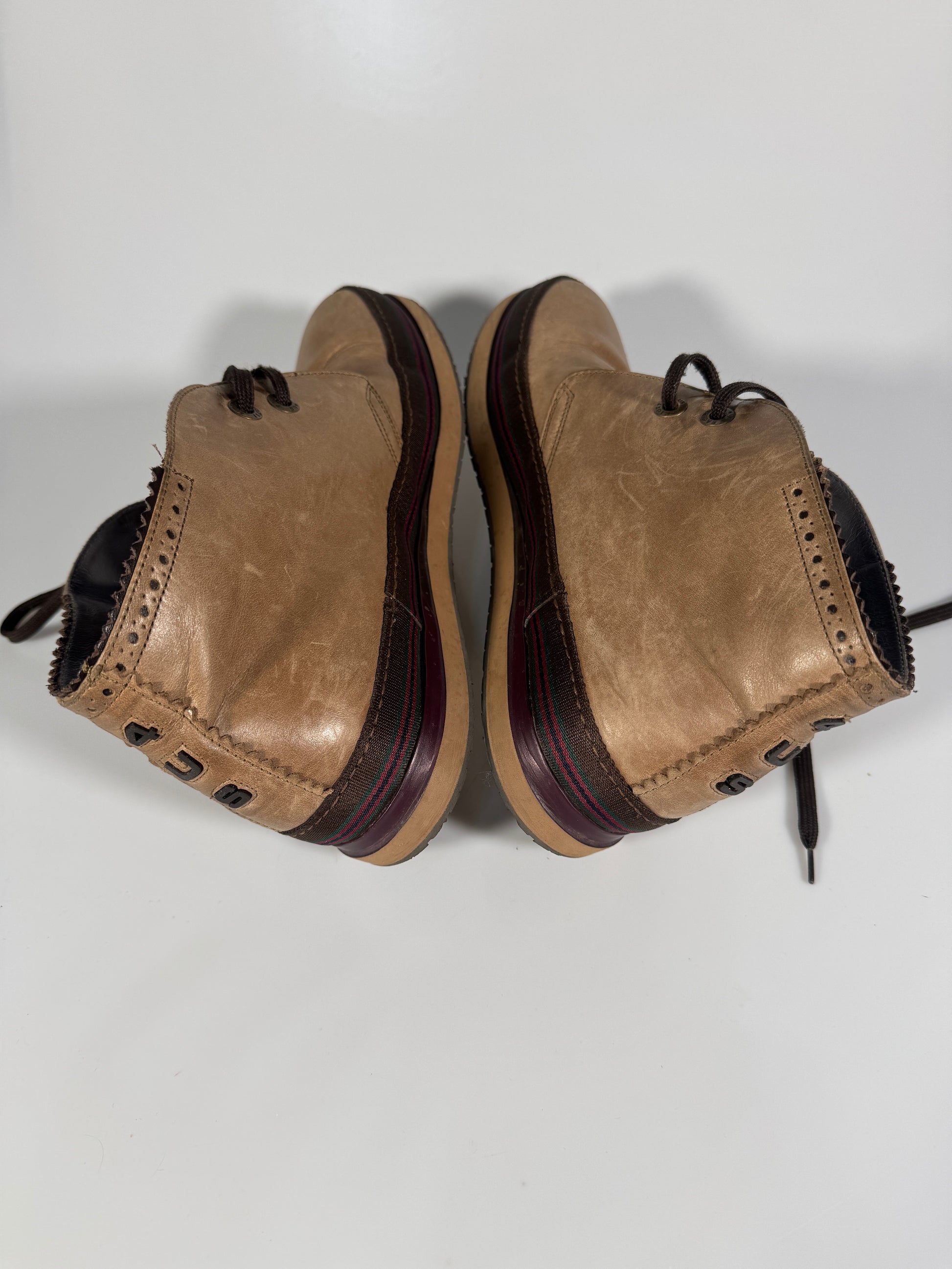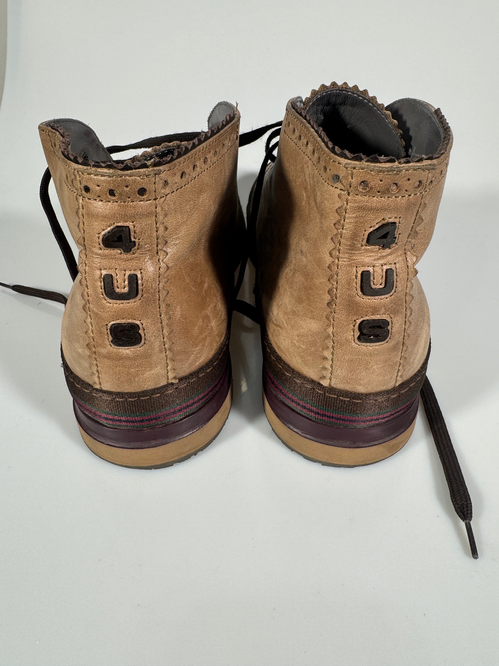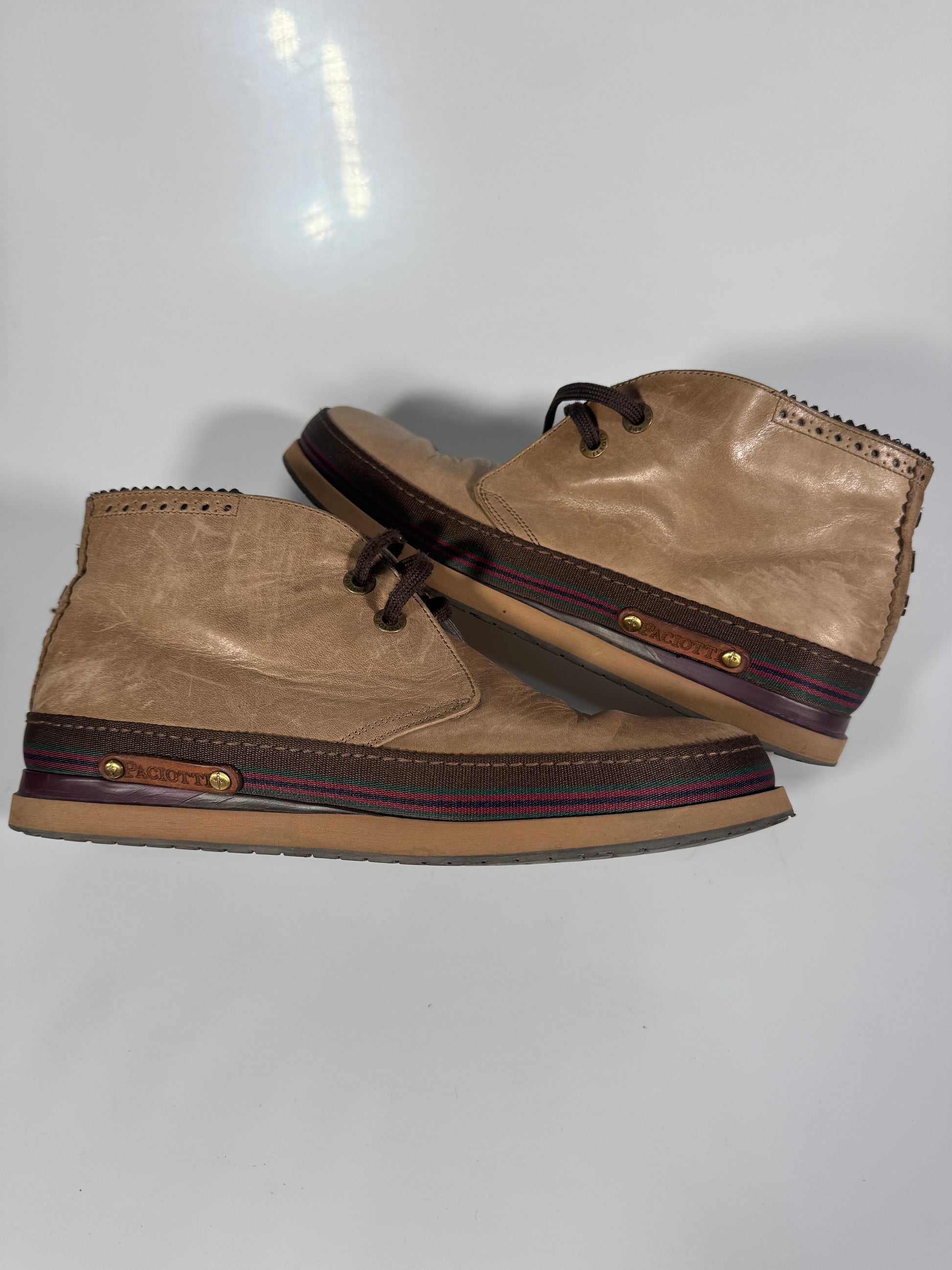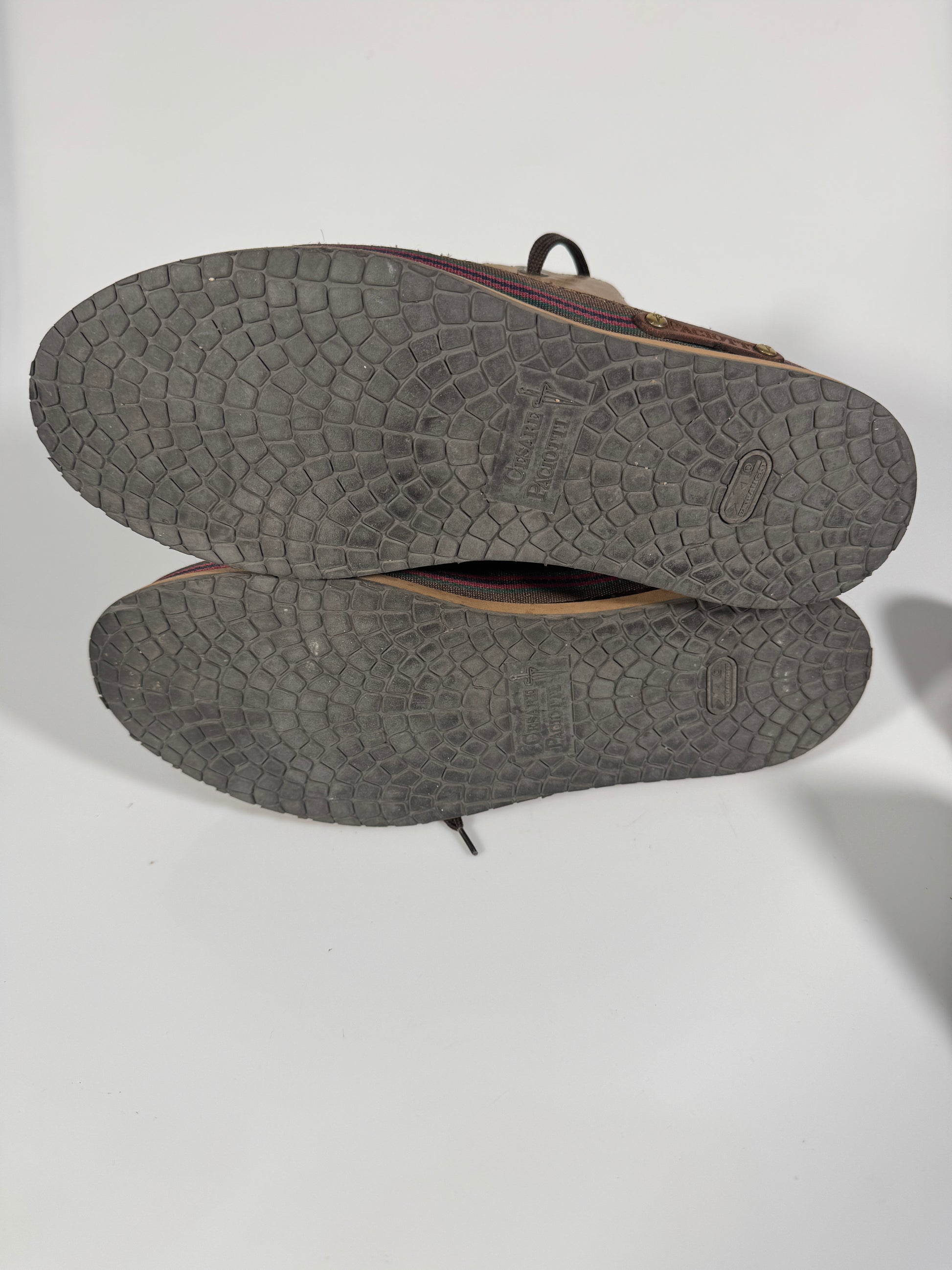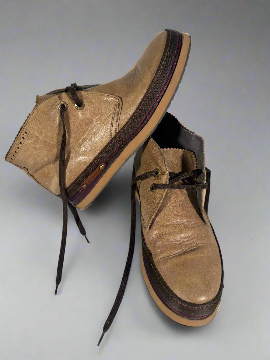 Ghete Cesare Paciotti pentru bărbați, mărimea 40, confecționate integral din piele naturală de calitate premium. Model casual-elegant în nuanță maro, cu detalii contrastante pe talpă și cusături fine. Talpa este solidă și durabilă, potrivită pentru purtare zilnică. Închidere clasică cu șireturi pentru ajustare confortabilă.