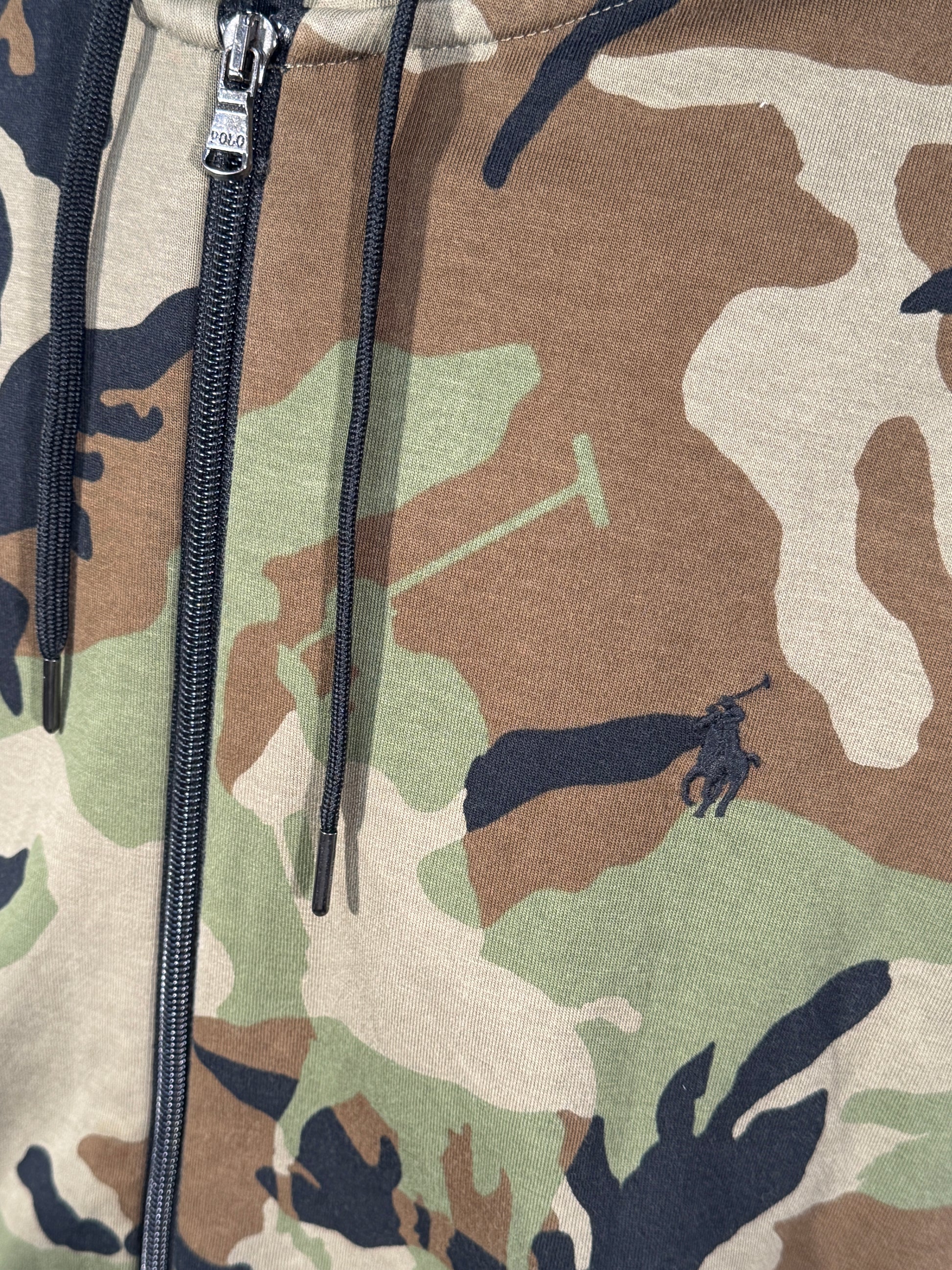 Completează-ți ținutele casual cu acest hanorac Polo Ralph Lauren original, cu imprimeu camuflaj militar clasic. Perfect pentru stil urban, streetwear sau outfituri de zi cu zi, hanoracul oferă confort, durabilitate și un look modern, inspirat din designul tactical.