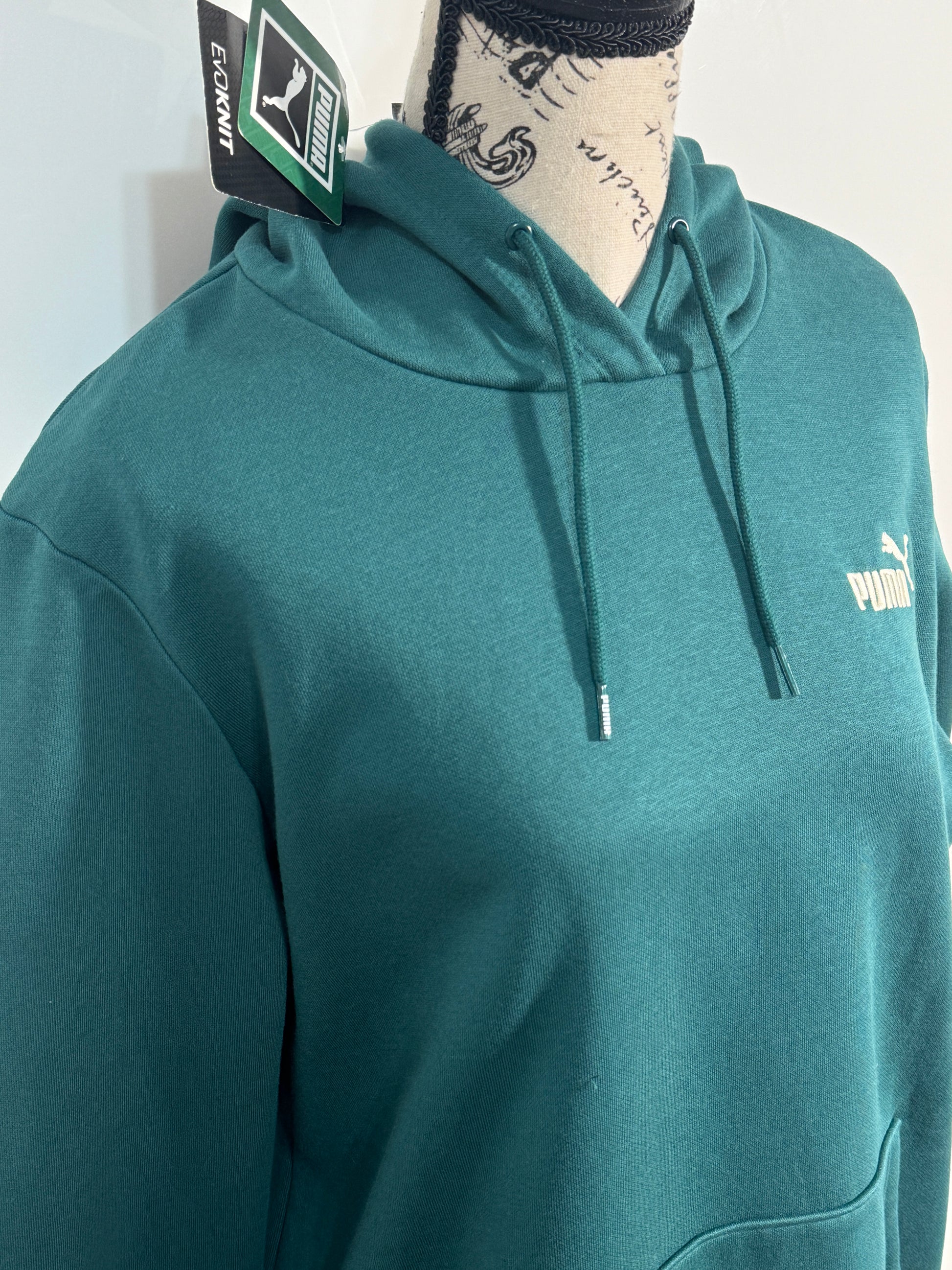 Hanoracul este prevăzut cu logo Puma brodat pe partea frontală, glugă ajustabilă cu șnur și manșete elastice la mâneci și la bază. Croiala lejeră îl face ușor de asortat cu pantaloni sport, colanți sau blugi.