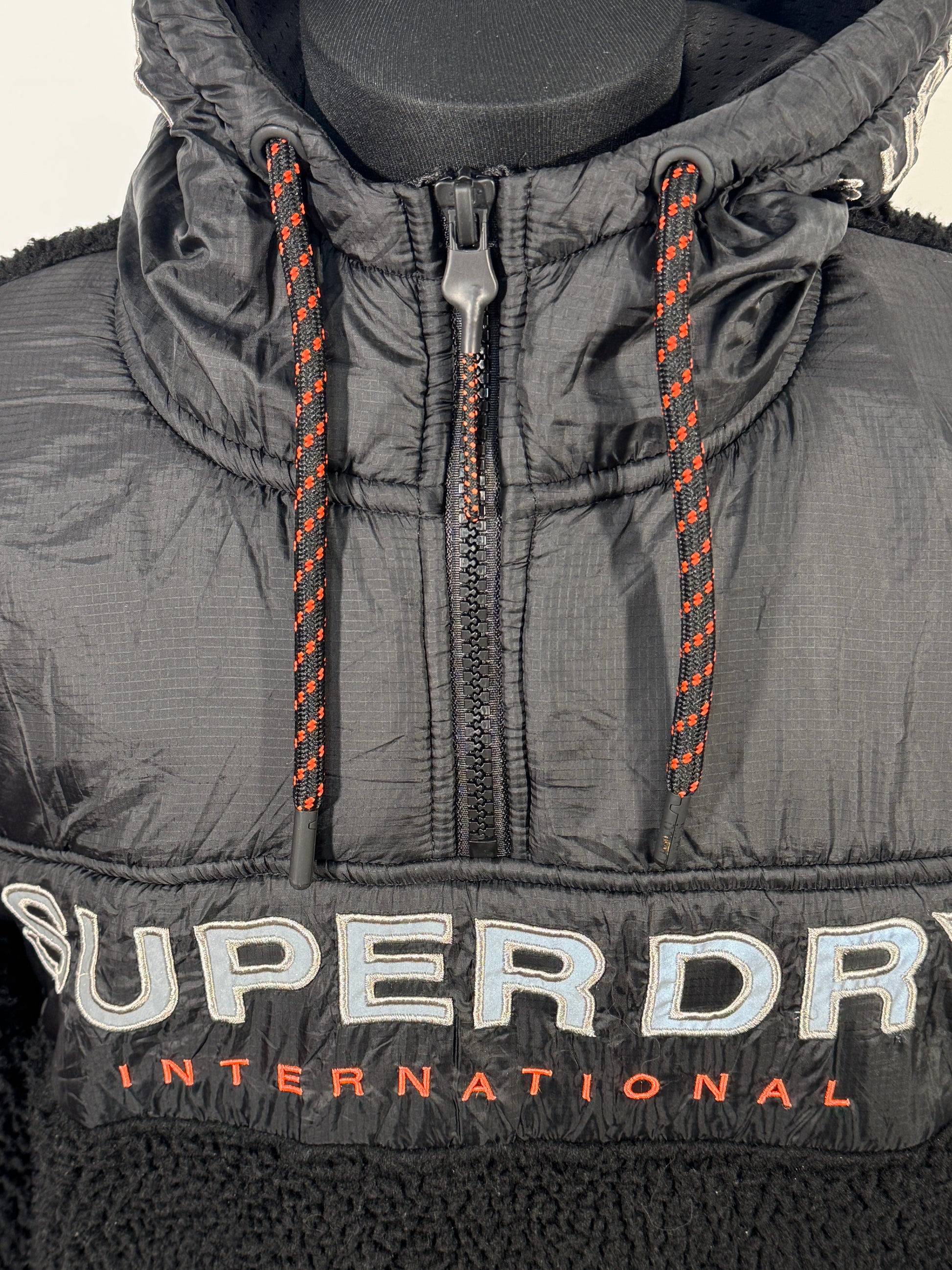 Pregătește-te pentru sezonul rece cu acest hanorac tip "fleece" de la Superdry, din colecția Worldwide Stealth. Designul hibrid îmbină textura pufoasă și călduroasă de tip Sherpa cu inserții din material rezistent în zona pieptului și a glugii. Este o piesă de streetwear robustă, ideală pentru a-ți oferi confort termic fără a sacrifica stilul.