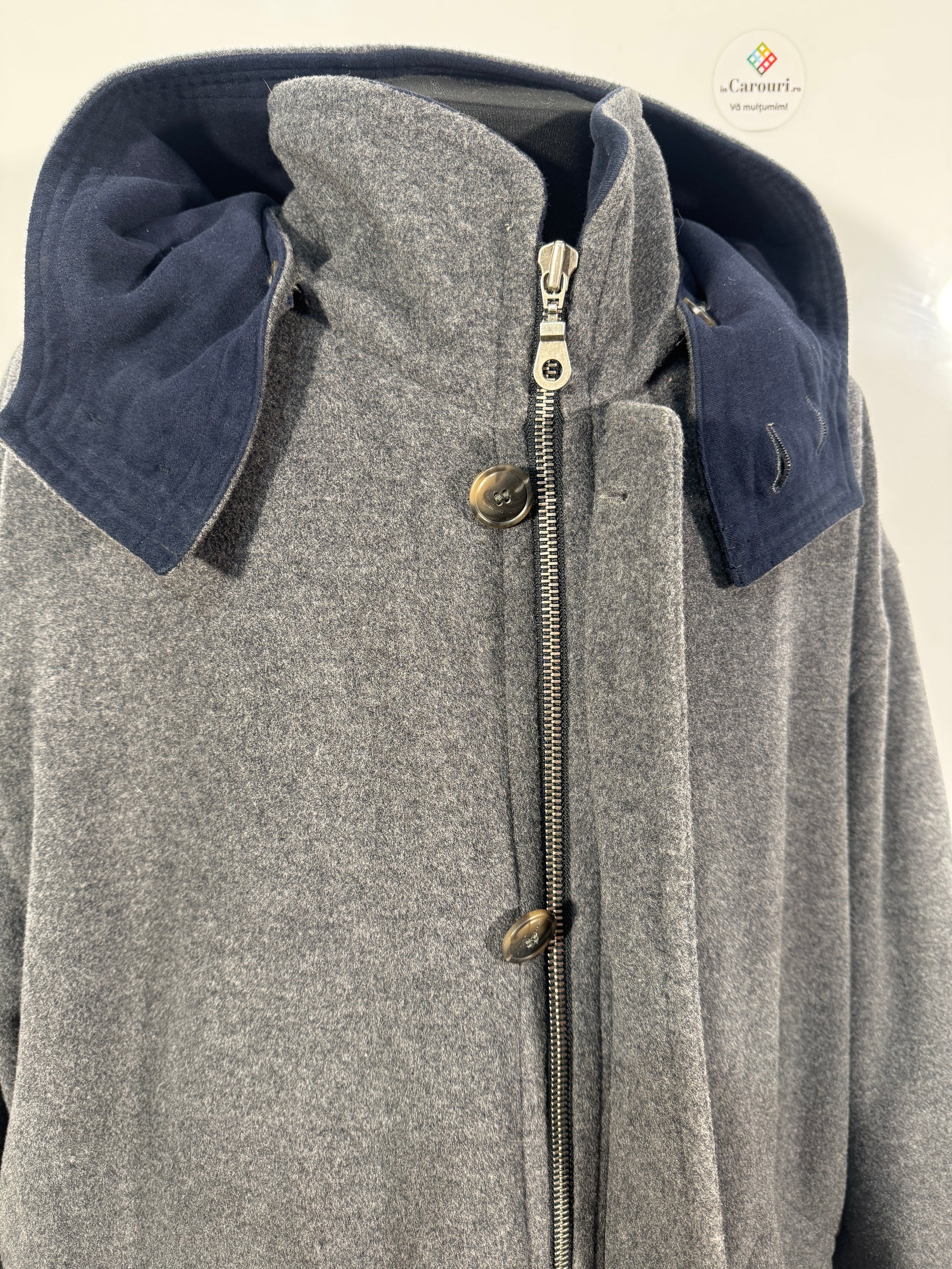 Palton Hugo Boss vintage, rar și de colecție, confecționat dintr-un amestec gros de lână premium, ideal pentru sezonul rece. Designul său clasic, cu linii curate și detalii elegante, oferă atât stil, cât și protecție excelentă împotriva frigului.