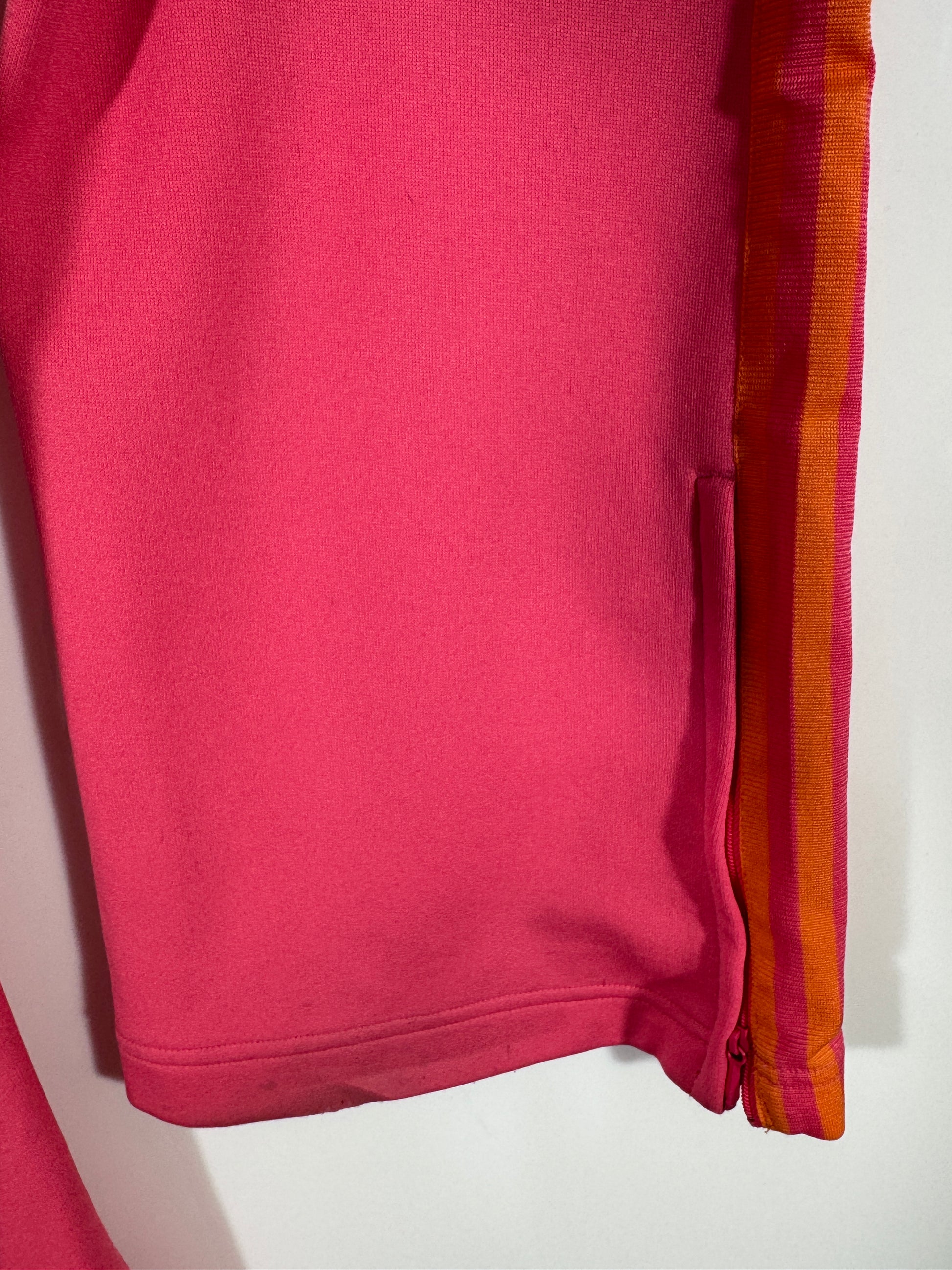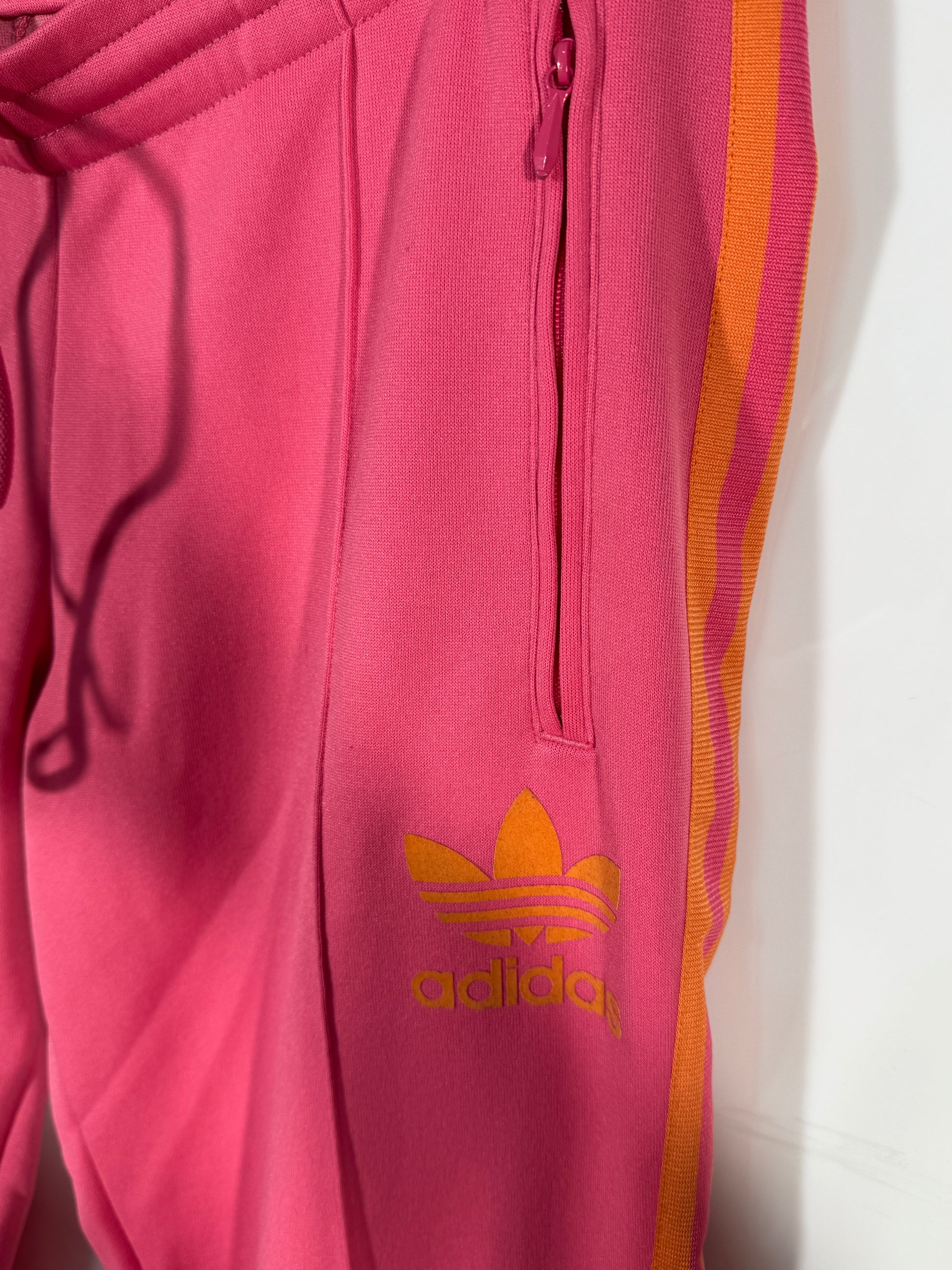 Ieși în evidență cu acești pantaloni de trening Adidas Originals într-o combinație îndrăzneață de culori: roz aprins și dungi portocalii. Sunt croiți dintr-un material tip mesh/texturat, oferind un look retro-sportiv autentic și o respirabilitate excelentă. Logo-ul brodat sub buzunar și croiul drept îi fac ideali pentru ținute streetwear pline de personalitate.