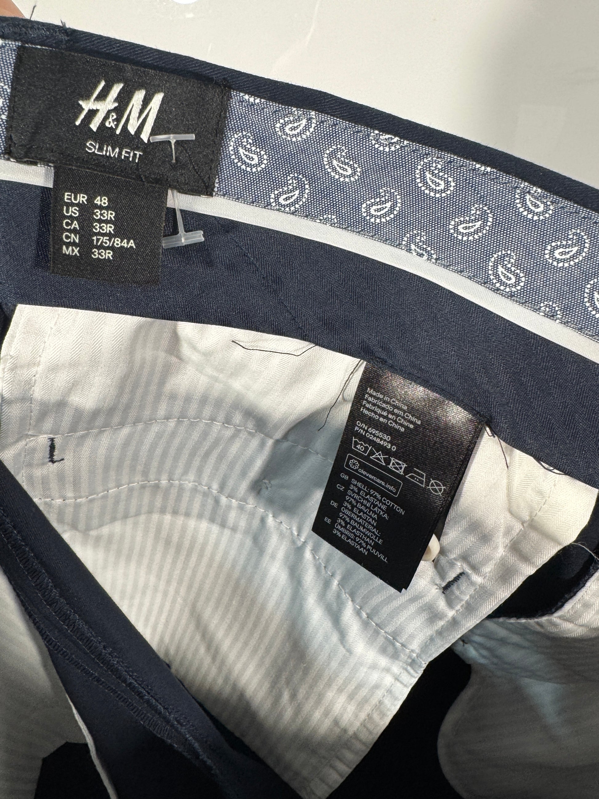 Pantaloni H&M pentru barbati, model casual, croiala slim. Potriviti pentru tinute de zi cu zi sau office casual. Design simplu, usor de asortat.