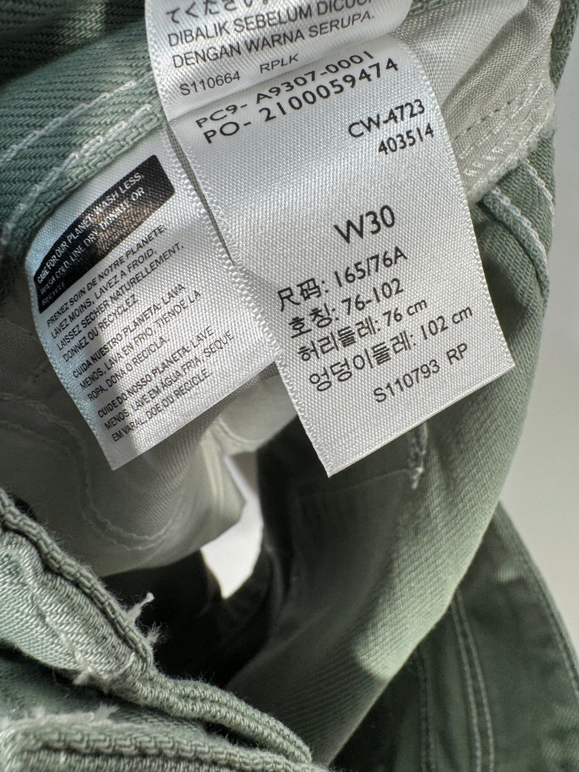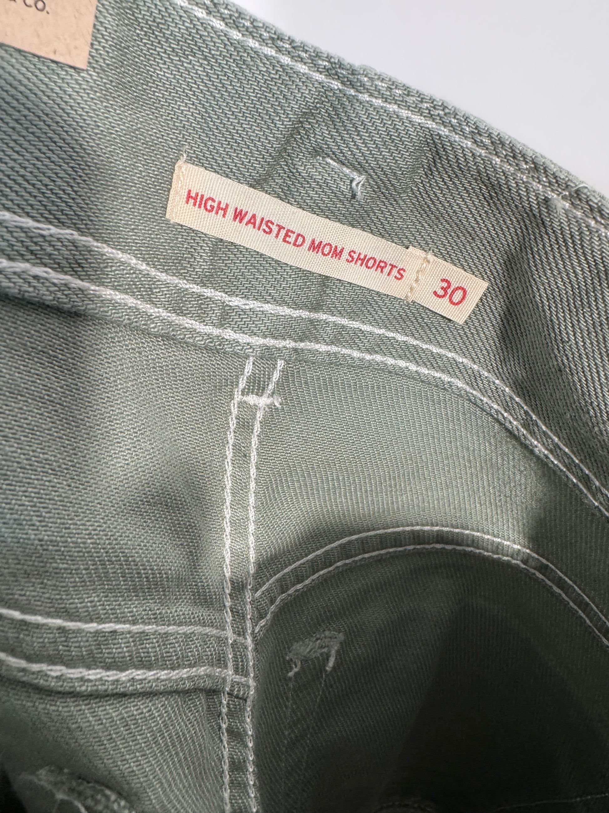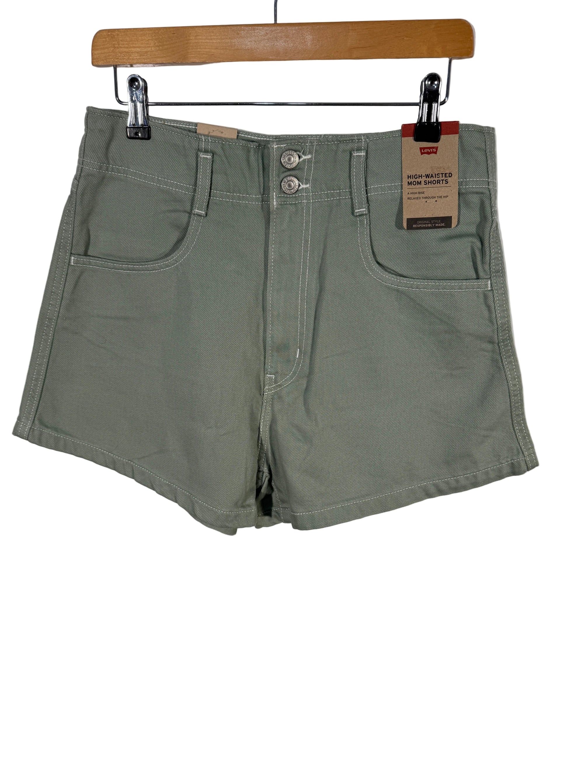 Pantaloni scurti Levi’s pentru dama, marime M, culoare verde kaki. Model cu talie inalta si inchidere cu nasturi metalici in fata.