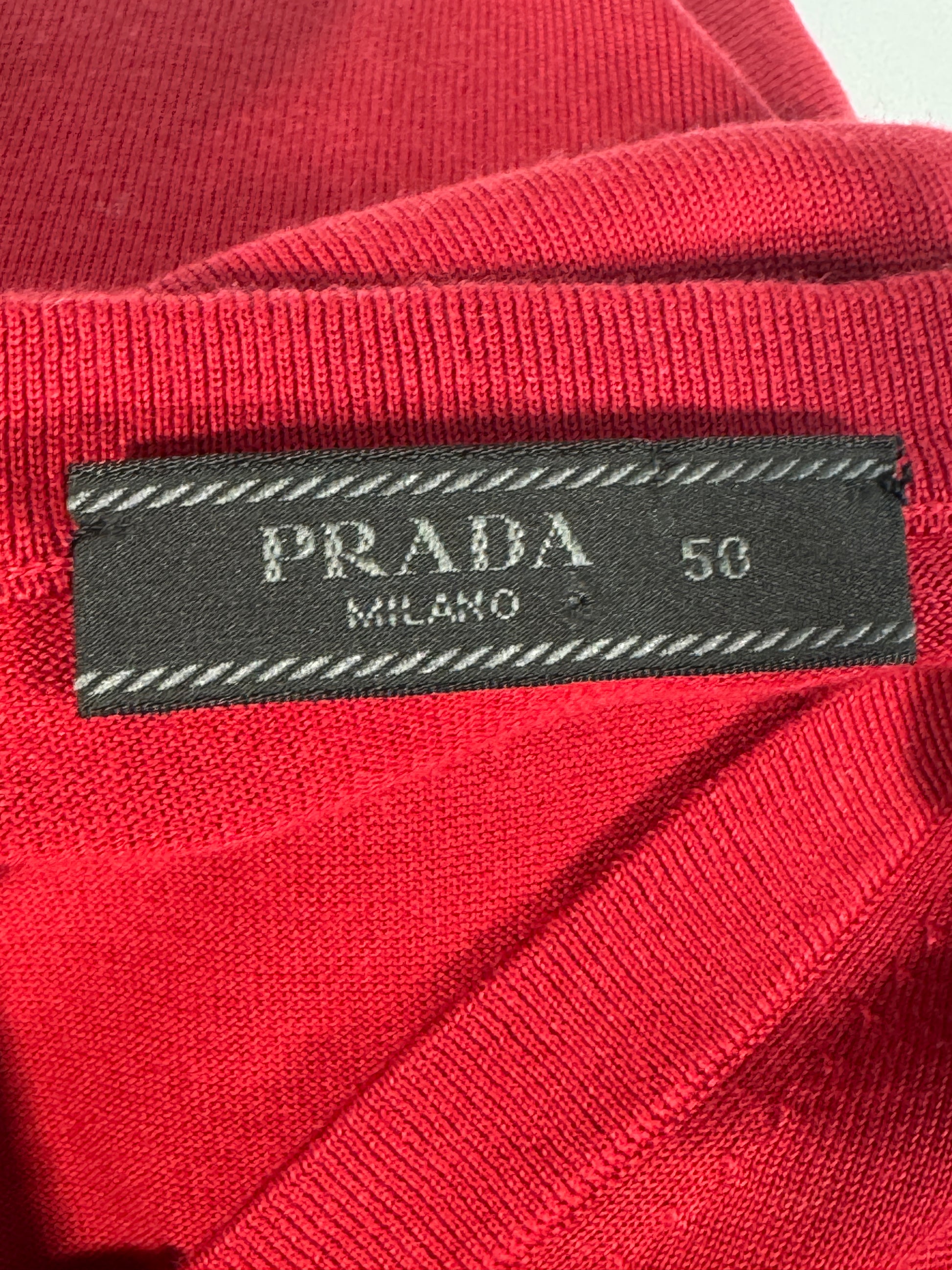Pulover de lux Prada, realizat din mătase naturală de cea mai bună calitate, extrem de fină și ușoară. O piesă elegantă, rafinată, care îmbină perfect confortul cu stilul minimalist specific brandului italian.