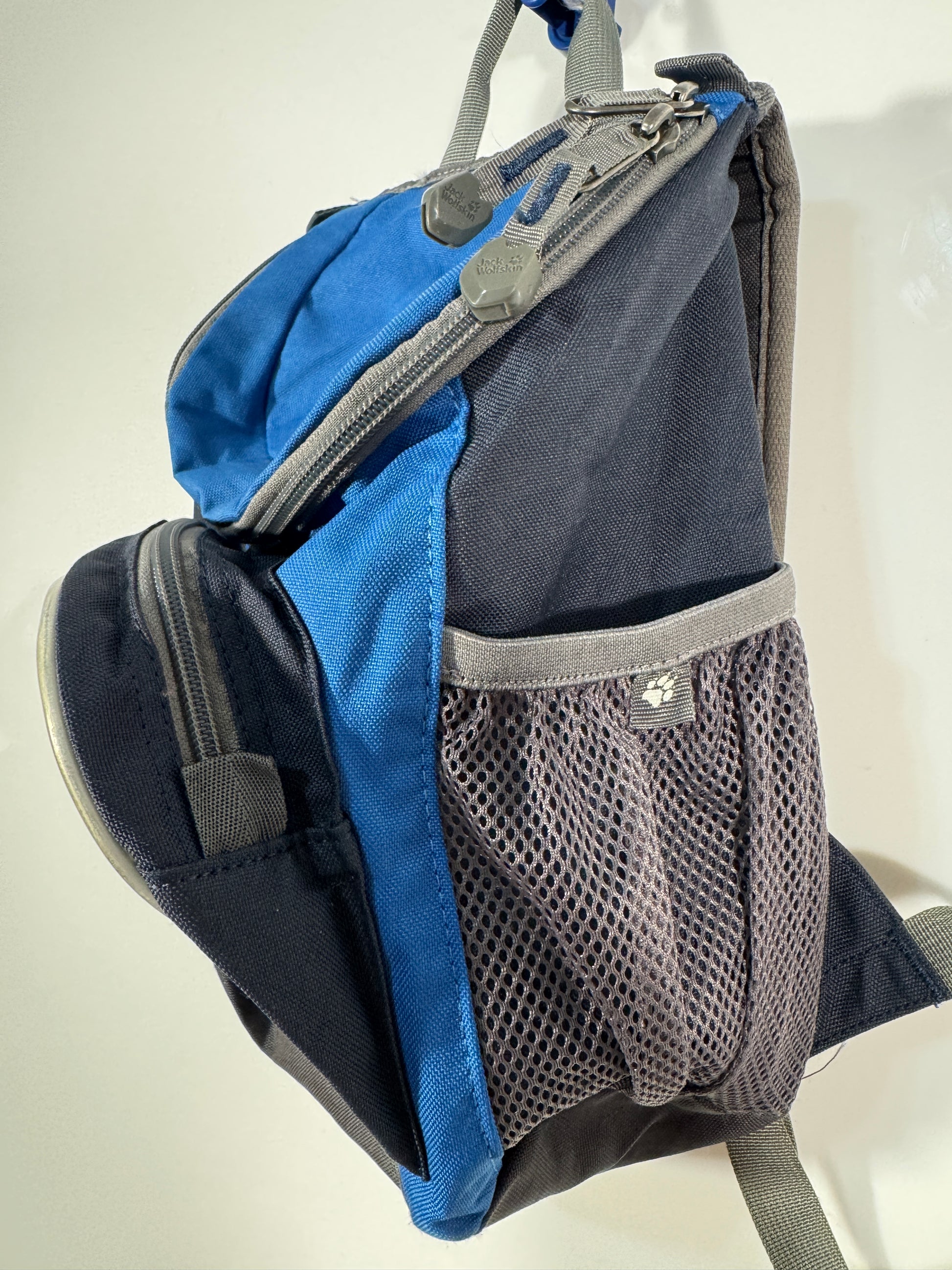 Rucsacul este realizat din materiale durabile și rezistente la uzură, având un design atractiv în nuanțe de albastru, cu logo-ul Jack Wolfskin în galben. Este ușor, practic și suficient de încăpător pentru jucării, gustări, sticluță cu apă sau rechizite.