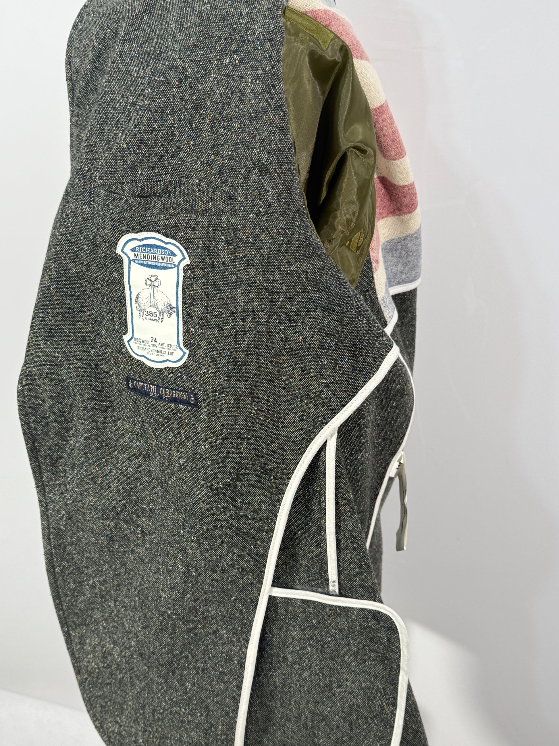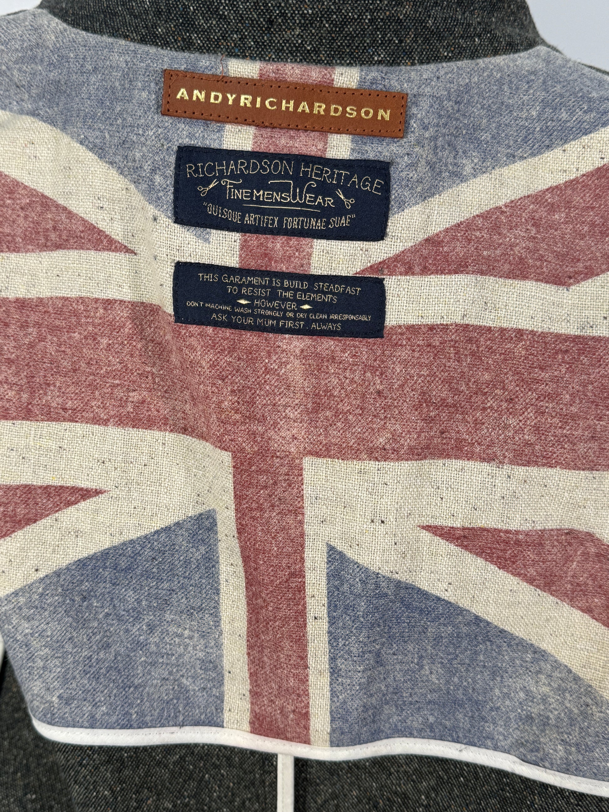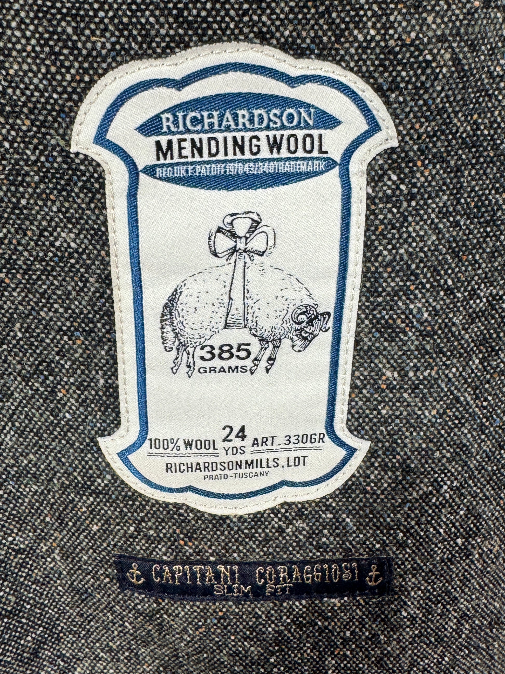 Sacou elegant Richardson, realizat integral din lână naturală 100%, oferind o textură moale și un confort termic excelent. Croiala modernă și țesătura clasică tip herringbone (model spic de grâu) adaugă o notă de rafinament, perfectă pentru un look smart-casual sau business.
