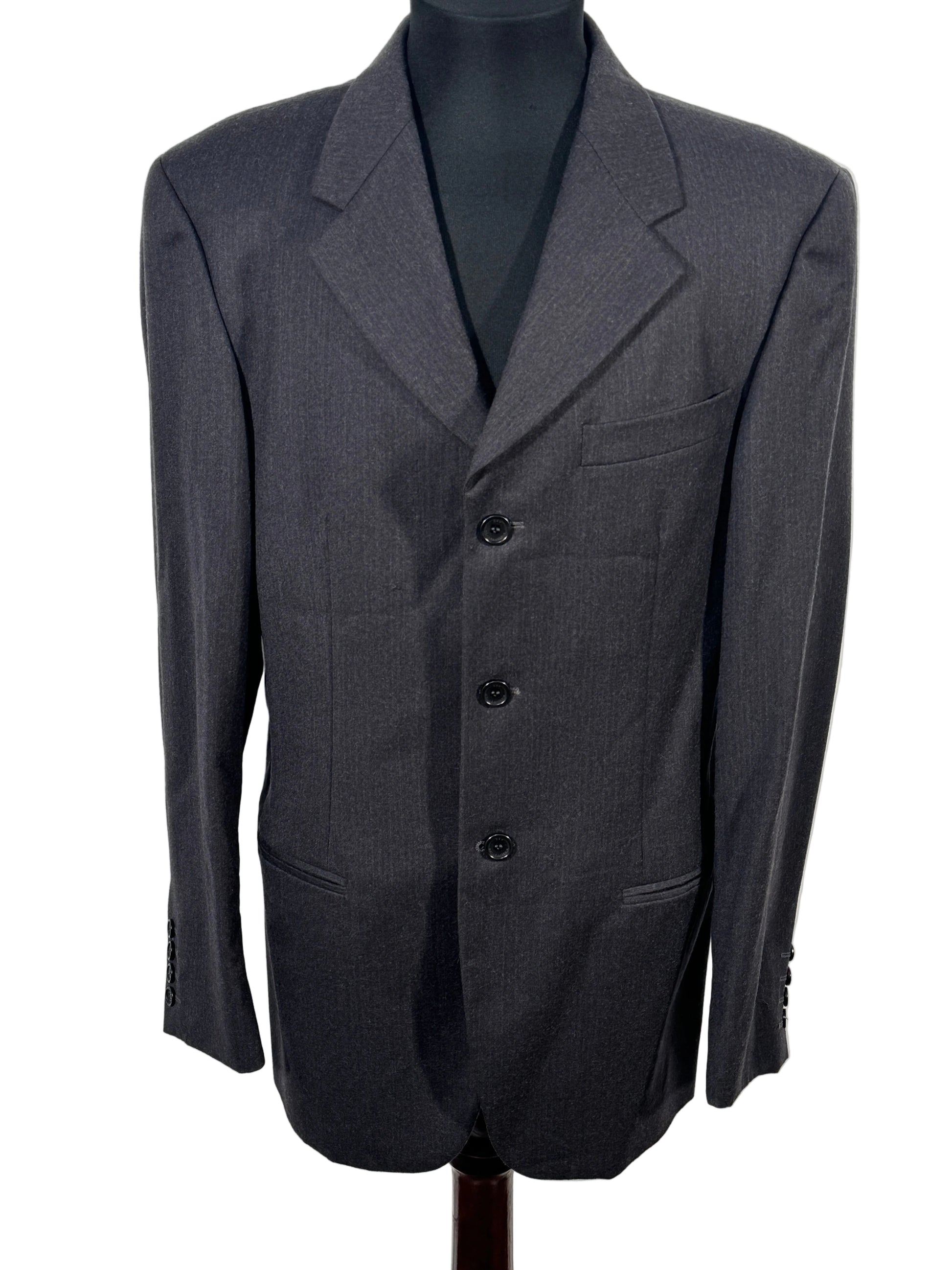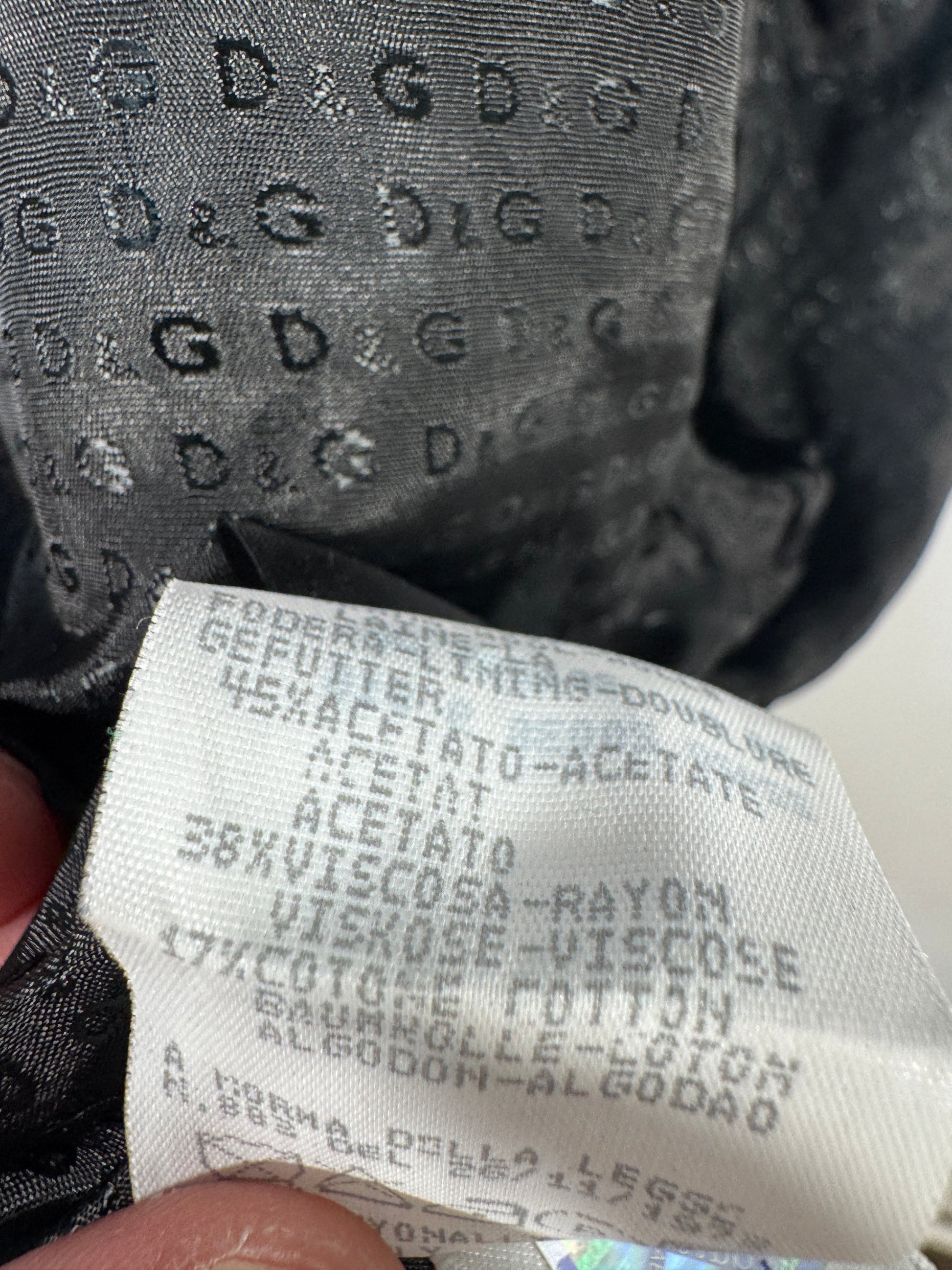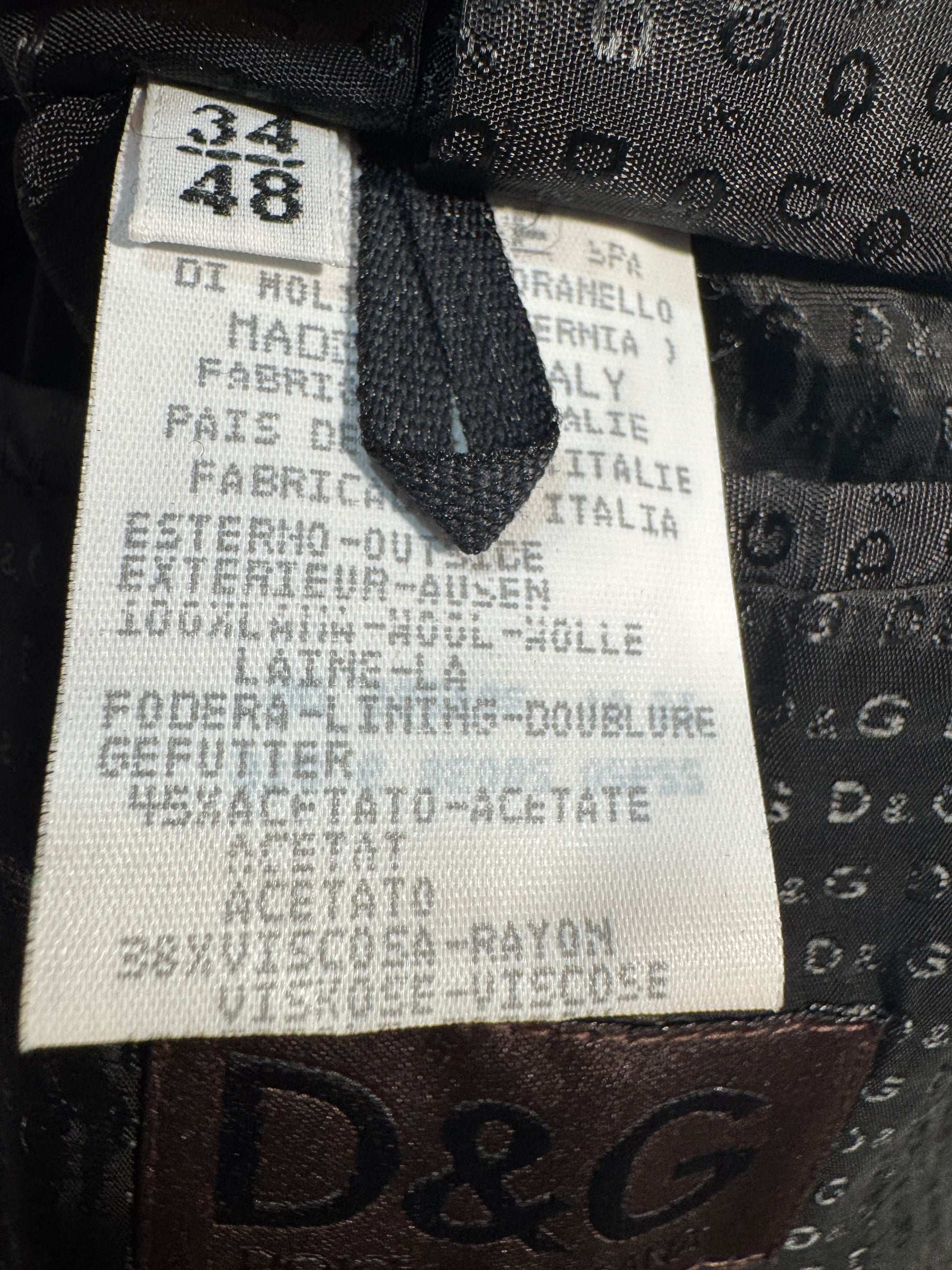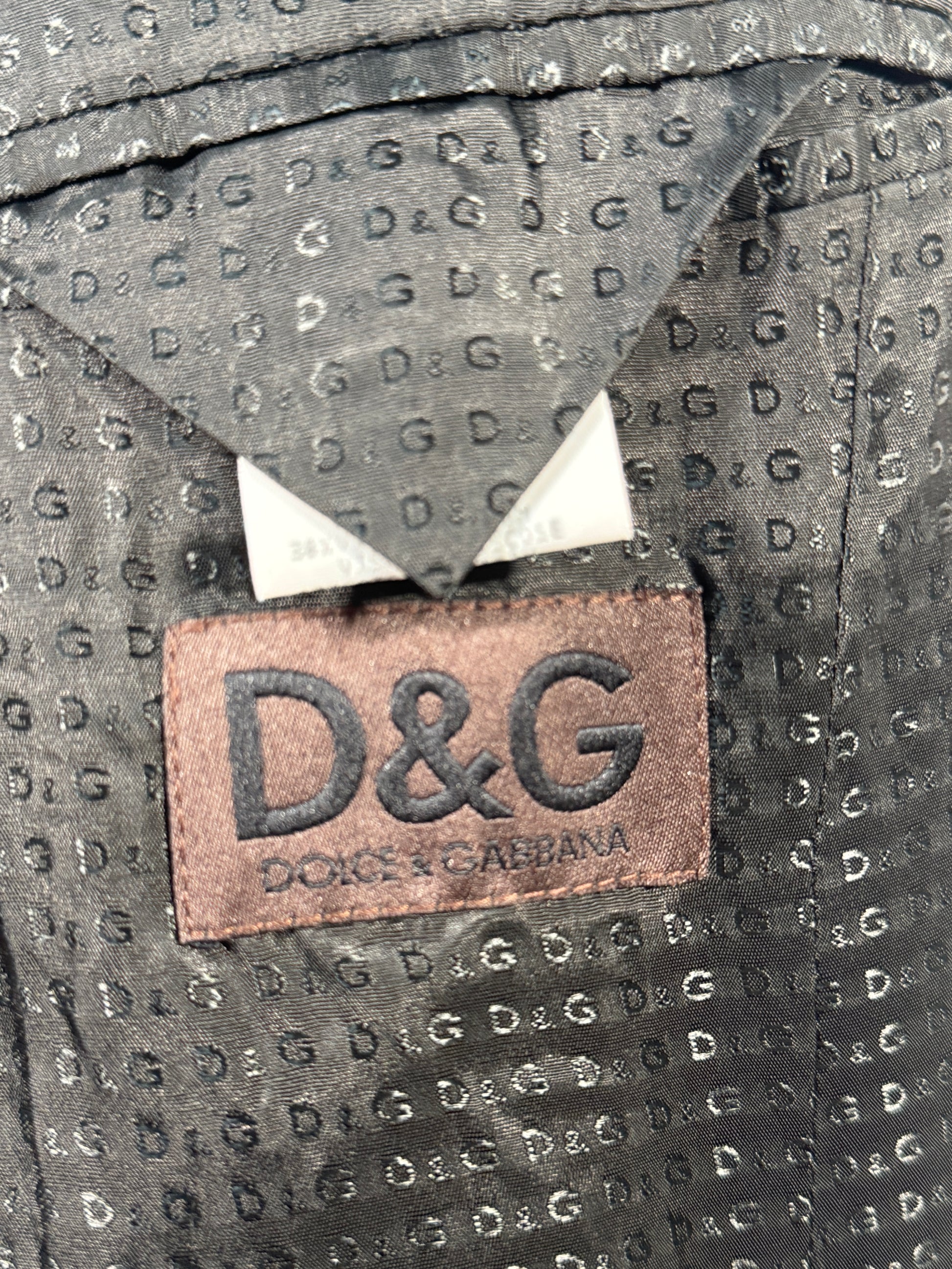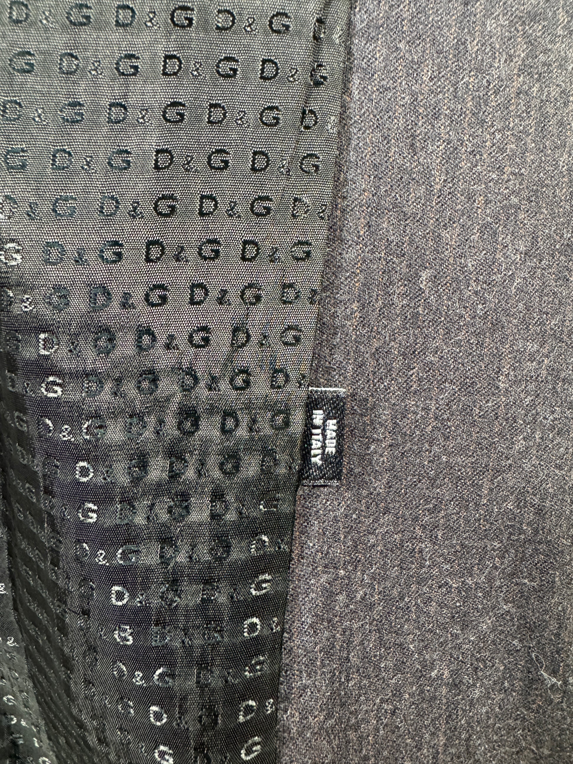 Sacou D&G (Dolce & Gabbana) pentru barbati, fabricat in Italia, marimea 48 (M). Culoare gri inchis, design elegant si croi clasic. Se inchide cu nasturi, are buzunare functionale si finisaje de calitate. Ideal pentru tinute office, evenimente sau ocazii speciale. Material de calitate, confortabil la purtare si cu aspect premium.
