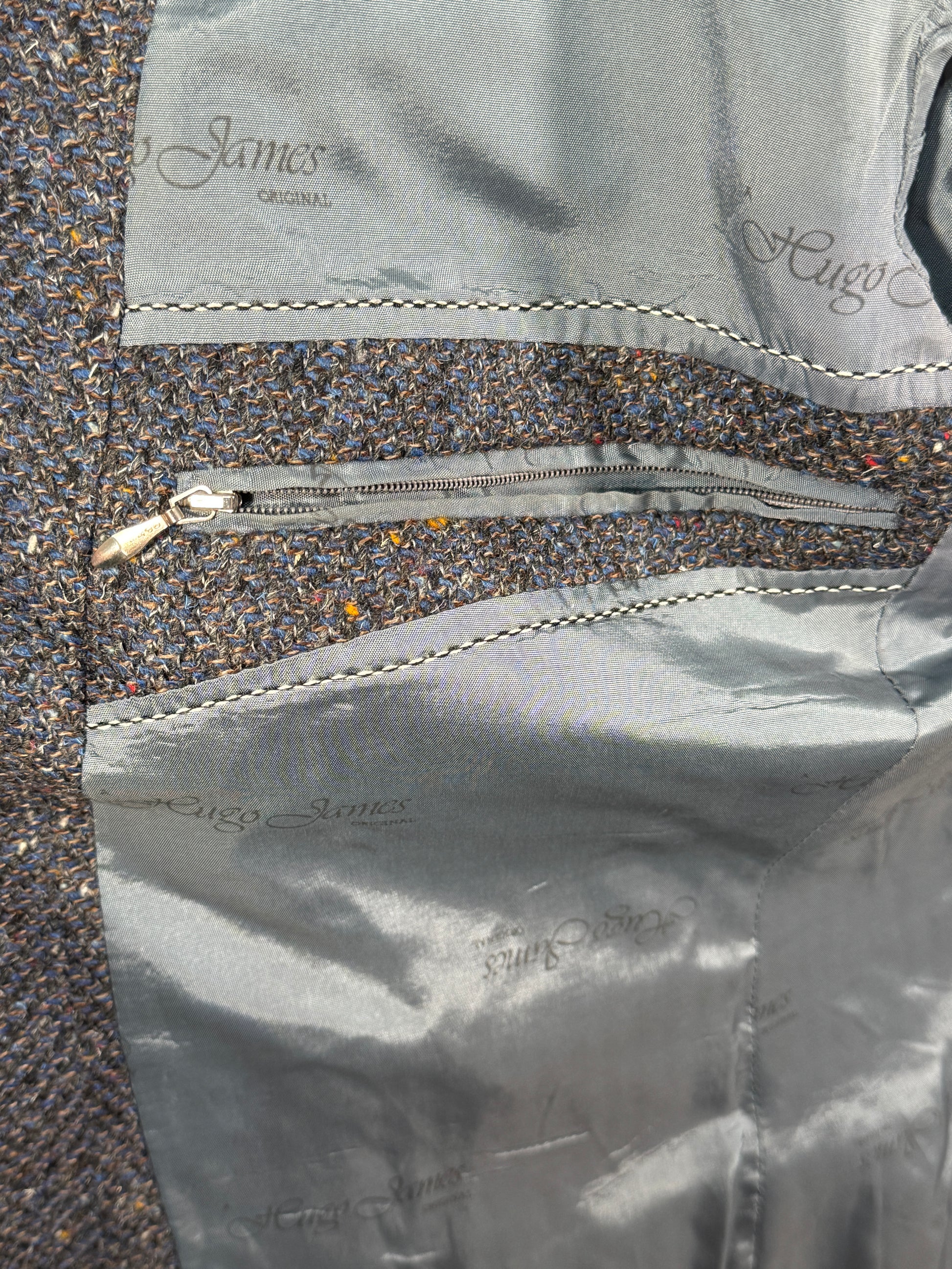 Sacoul Hugo James este o piesă elegantă, cu aer clasic și rafinat, inspirată din croielile britanice vintage. Confecționat din 100% lână naturală, are o textură tweed fină și o nuanță rafinată de gri-albăstrui cu inserții subtile, oferind un aspect sofisticat și autentic.