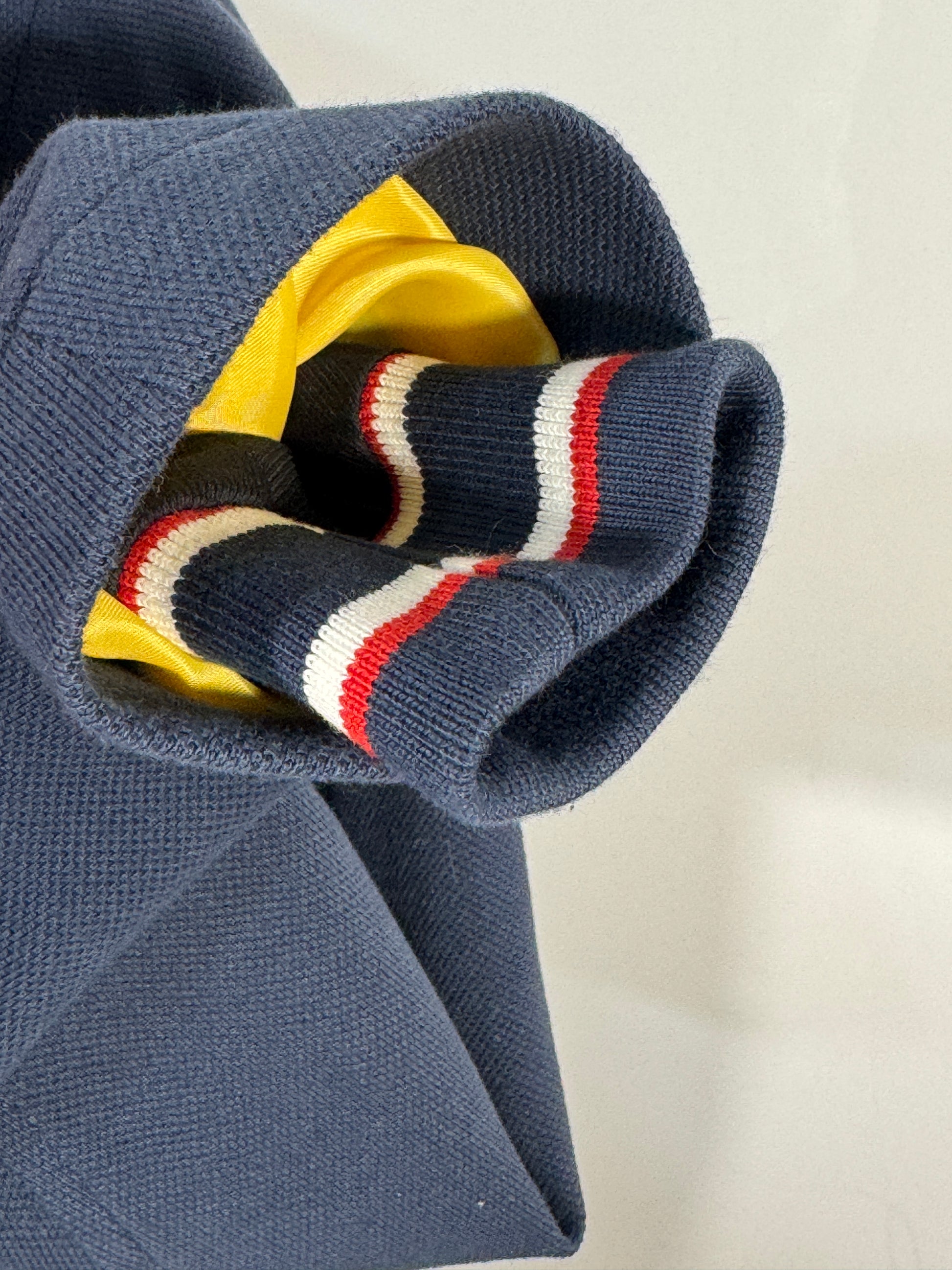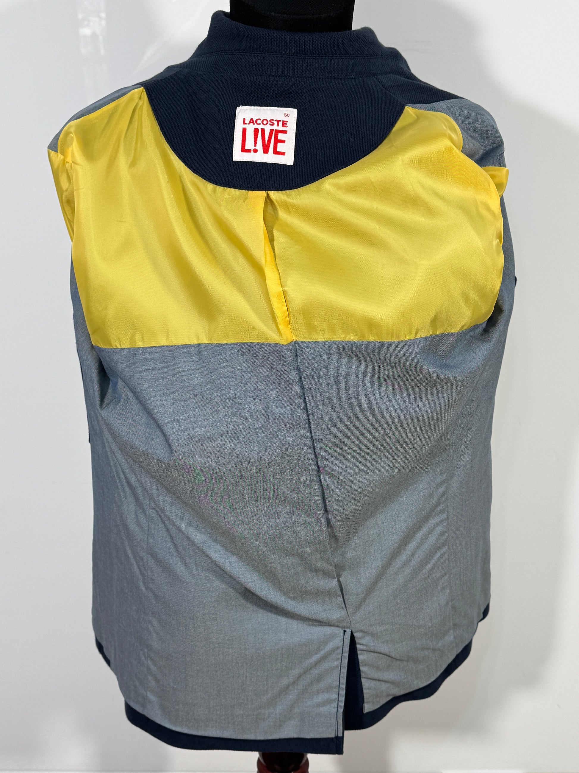 Acest sacou Lacoste combină confortul unui cardigan cu structura unui sacou elegant, fiind piesa ideală pentru un stil smart-casual relaxat. Culoarea bleumarin clasică și logo-ul iconic „Crocodil” brodat pe buzunarul frontal oferă o notă distinctă de rafinament sportiv. Este realizat dintr-un material cu textură deosebită, respirabil și ușor elastic.