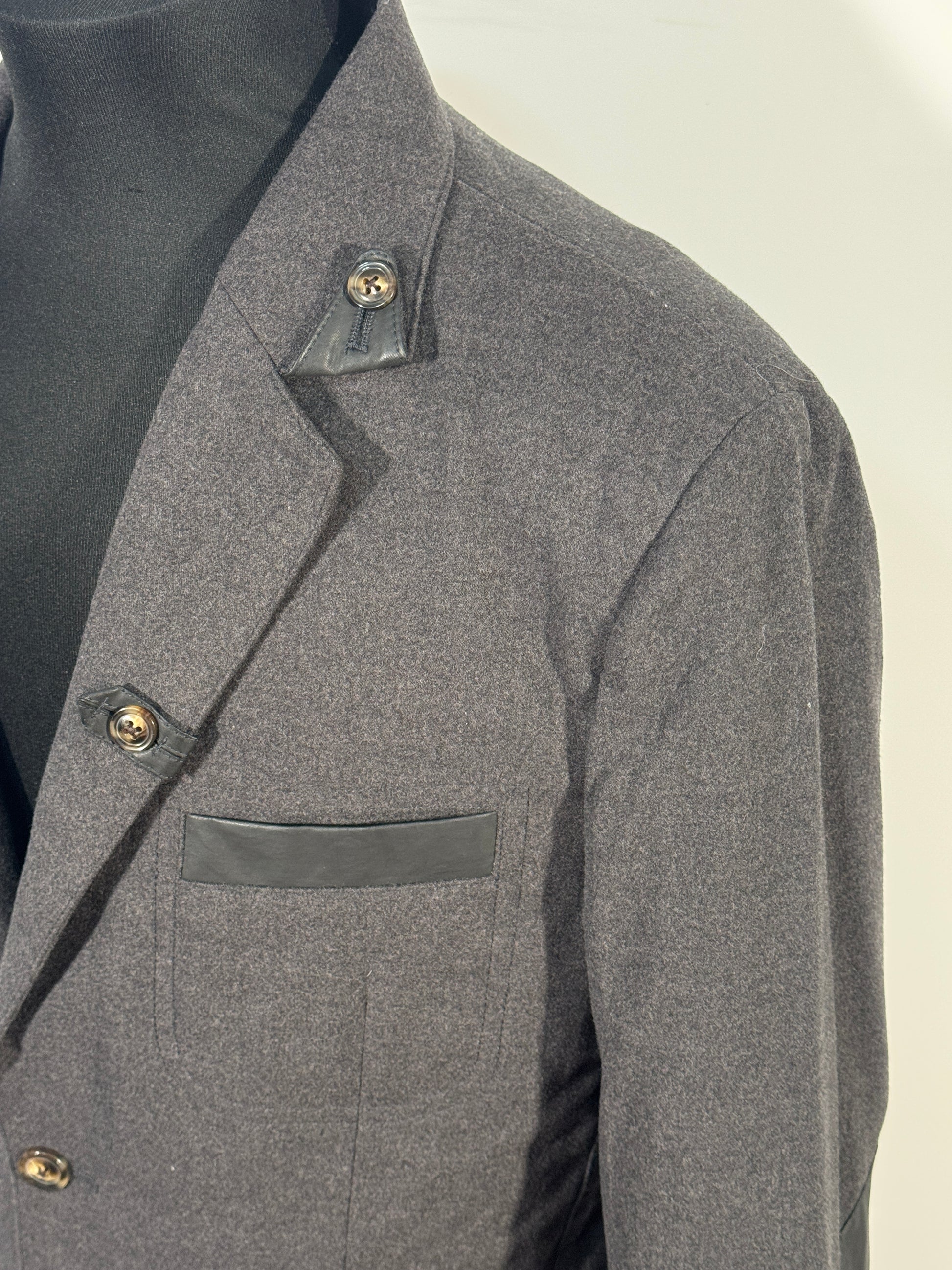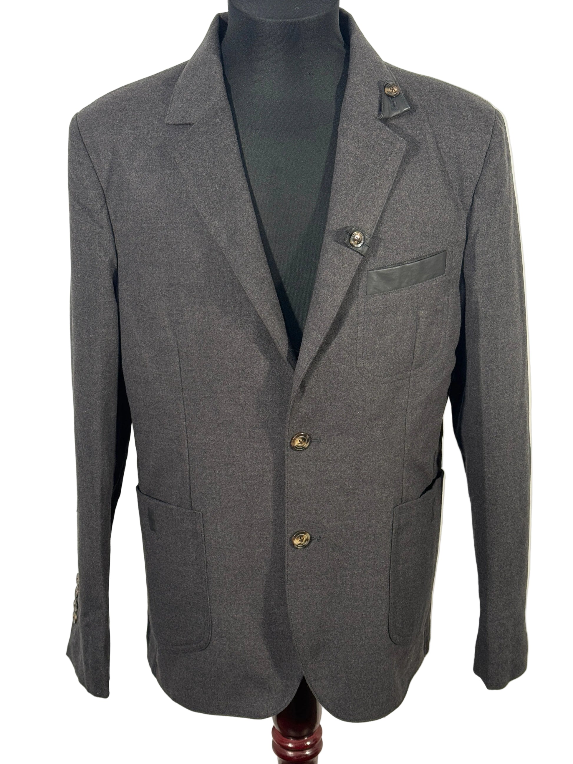 Sacou Nior Milano pentru barbati, fabricat in Italia, marimea 50 (M). Culoare gri, croi elegant, potrivit pentru tinute office sau evenimente. Se inchide cu nasturi, are buzunare frontale si buzunar la piept. Material de calitate, confortabil si bine structurat.