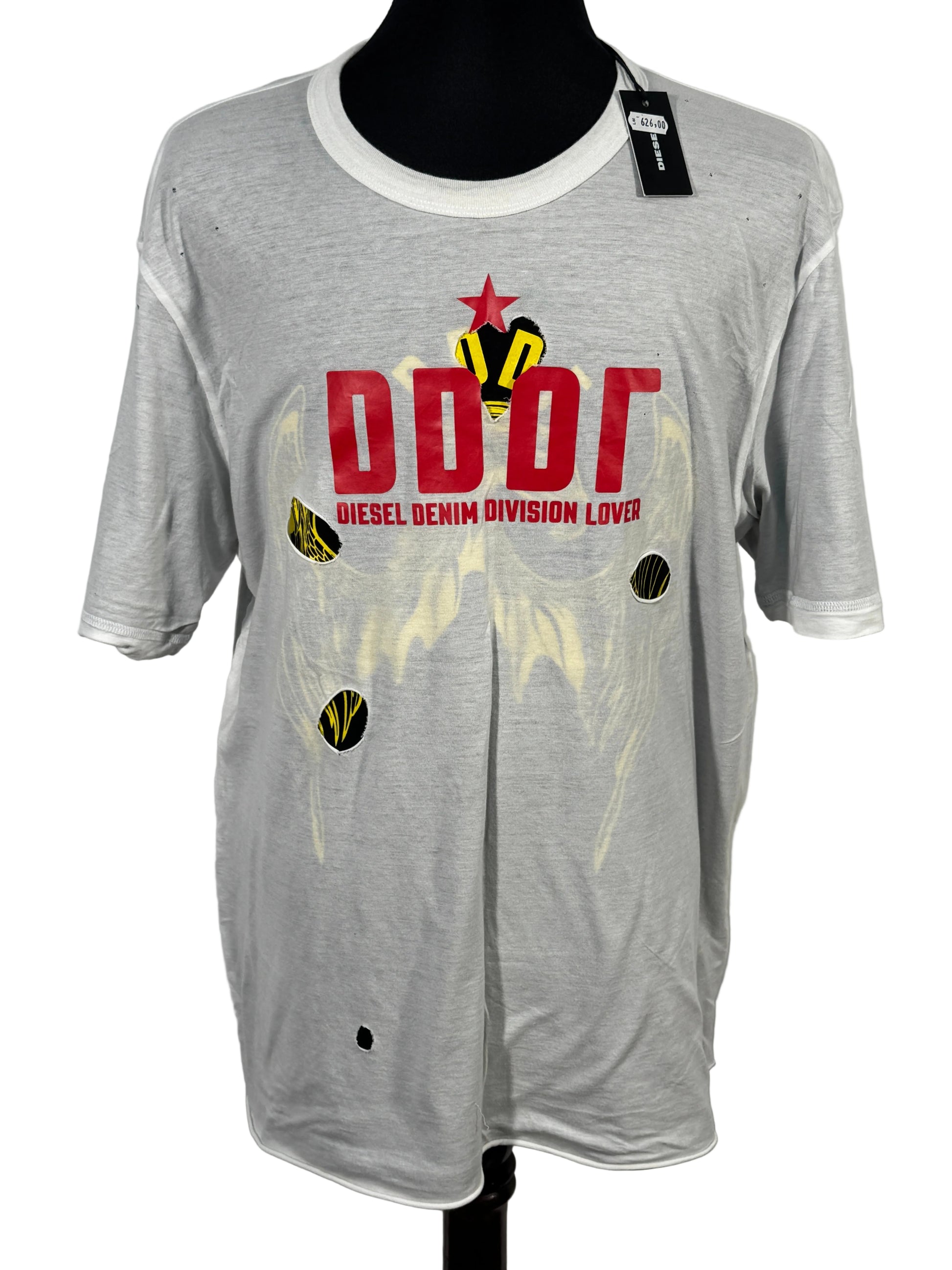 Tricou Diesel original pentru barbati, cu design grafic statement pe piept, ideal pentru tinute casual si streetwear. Model modern, culoare gri, cu print mare in fata care ofera un look urban si usor rebel, specific brandului Diesel.