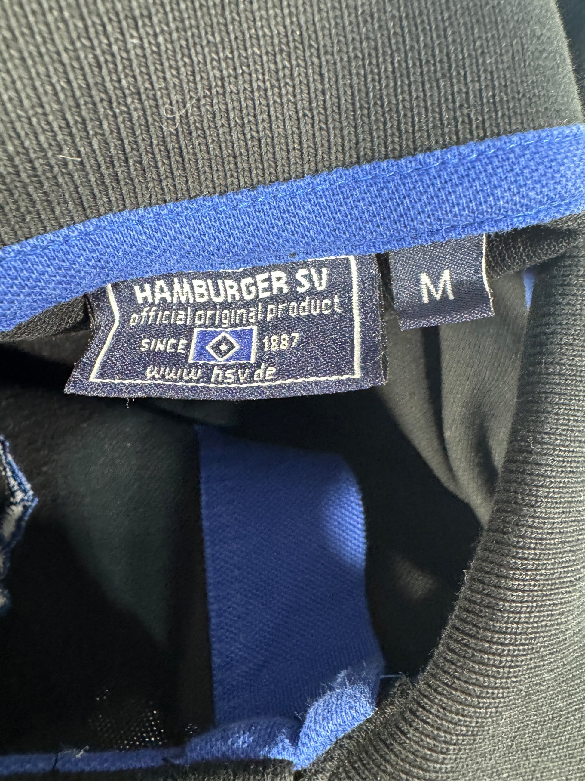 Tricou polo oficial Hamburger SV, dedicat suporterilor echipei, mărimea M (se potrivește și pentru L). Realizat din bumbac de calitate, în nuanță clasică de negru, cu broderii albastre și albe specifice clubului: sigla, textul „Hamburger SV” și numărul 18 pe mânecă. Croială regular fit, ideal pentru fanii fotbalului și colecționari.