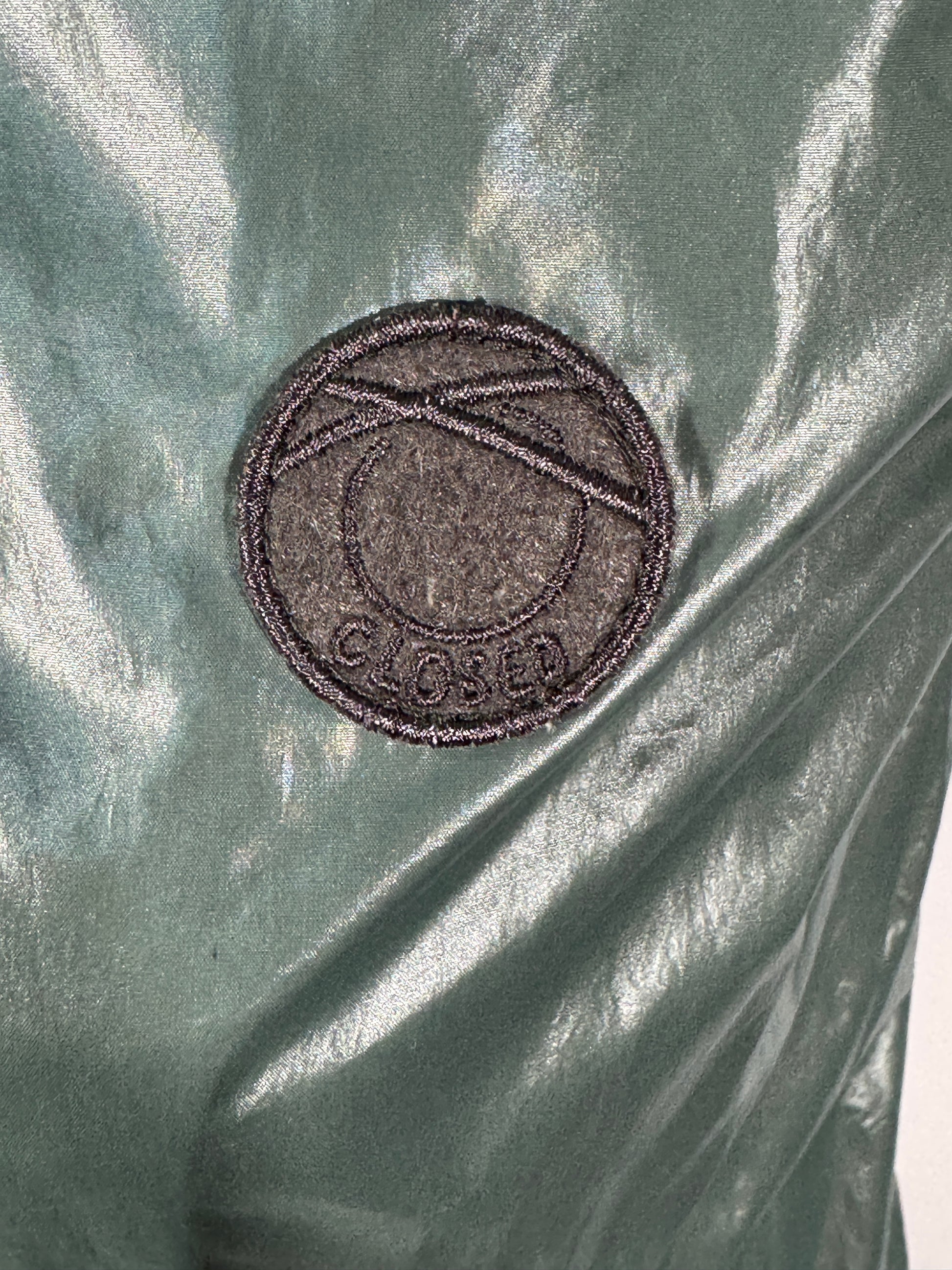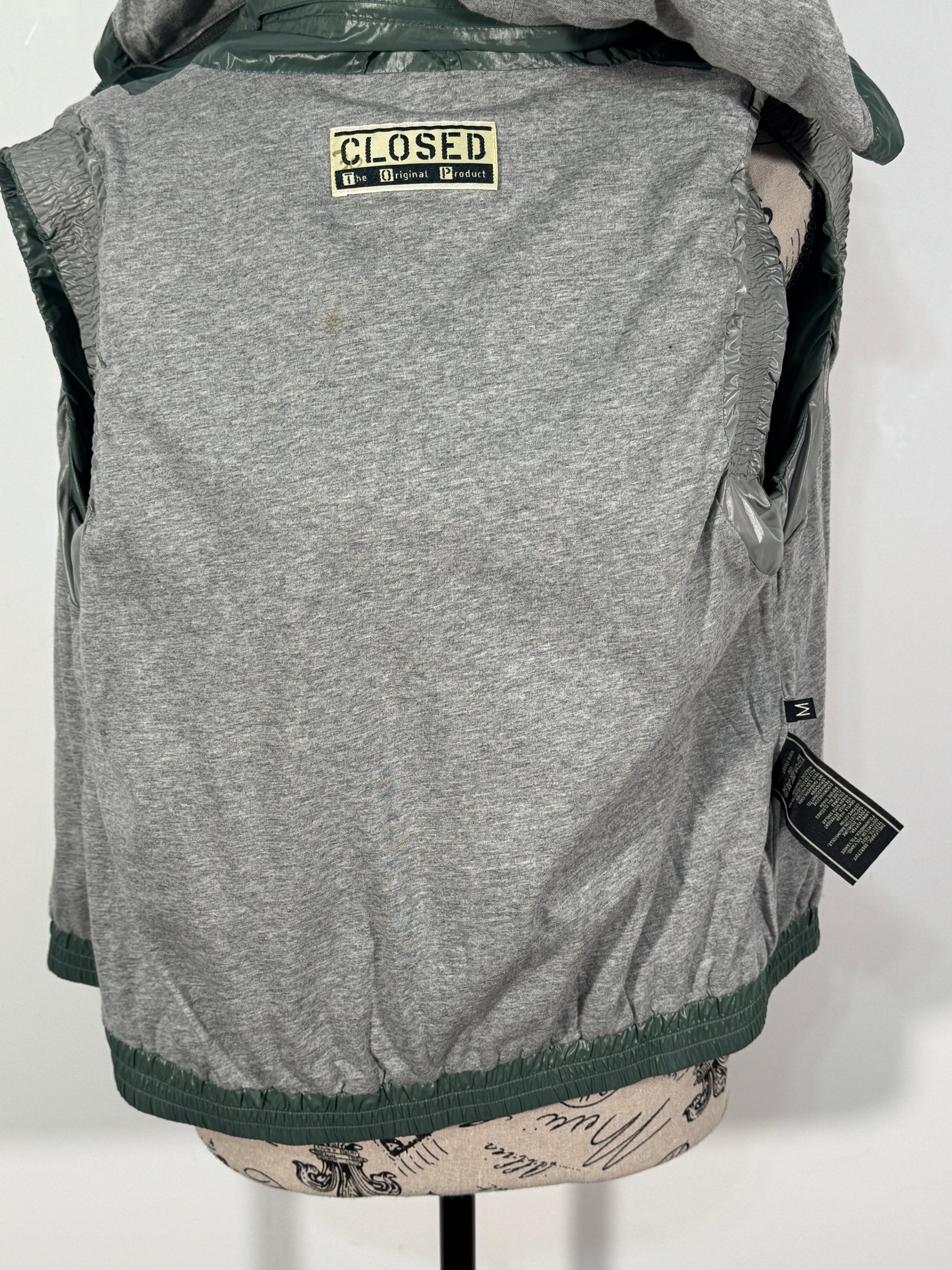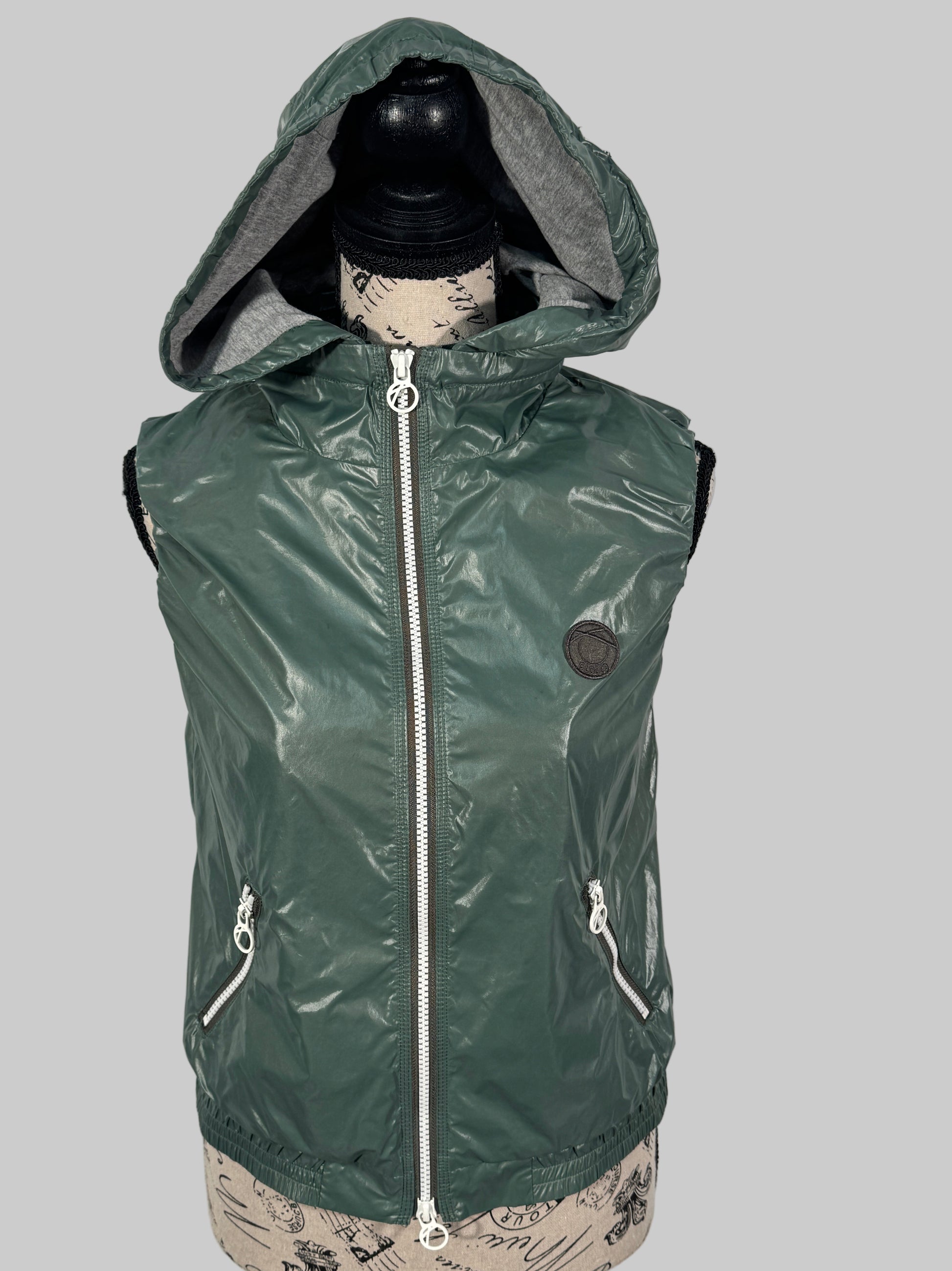 Vestă Closed pentru damă, potrivită pentru mărimile S-M, într-o nuanță de verde închis. Model practic și versatil, cu glugă căptușită și închidere cu fermoar argintiu. Are două buzunare laterale cu fermoar, ideală pentru ținute casual sau sport. O piesă ușoară, dar utilă pentru zilele mai răcoroase.